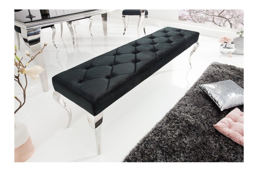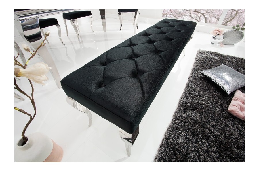 Banquette extravagante avec revêtement en velours noir de grande qualité ! Ses coutures décoratives donnent au design un charme particulier ,les pieds en acier inoxydable garantissent un support sécurisé sur toutes les surfaces !