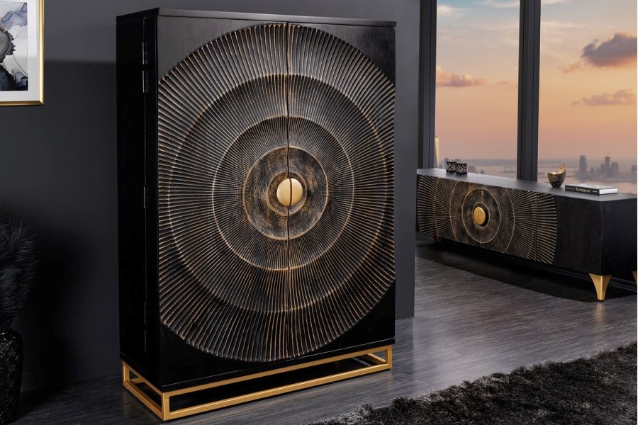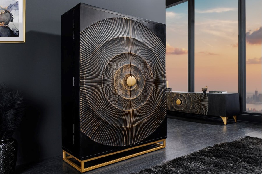 Meuble bar Golden Sunset 140cm noir en bois de manguier