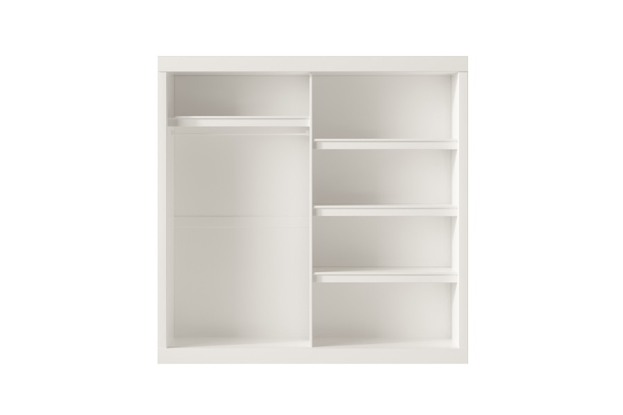 - Gain d’espace : Les portes coulissantes rendent cette armoire idéale pour des pièces aux dimensions limitées, maximisant l’accessibilité sans compromettre l’espace.