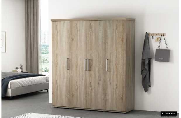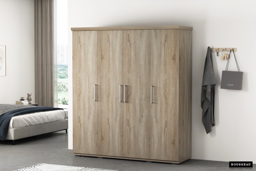 - Rangement fonctionnel : Grâce à ses 4 portes, cette armoire permet d'organiser et d'accéder aisément à vos vêtements, vous aidant à maintenir une chambre ordonnée.