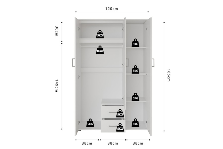 - Ces dimensions offrent une capacité spacieuse sans encombrer l’espace, faisant de l’armoire Marc un choix parfait pour les chambres de toutes tailles.