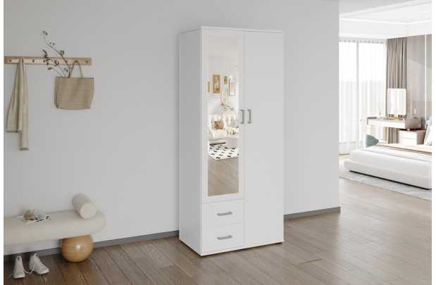 La 'Marc' 2 portes, 2 tiroirs avec miroir - Blanc est une armoire fonctionnelle et élégante qui maximise le rangement sans encombrer l’espace. C’est l’ajout parfait pour un intérieur bien organisé, lumineux et moderne.