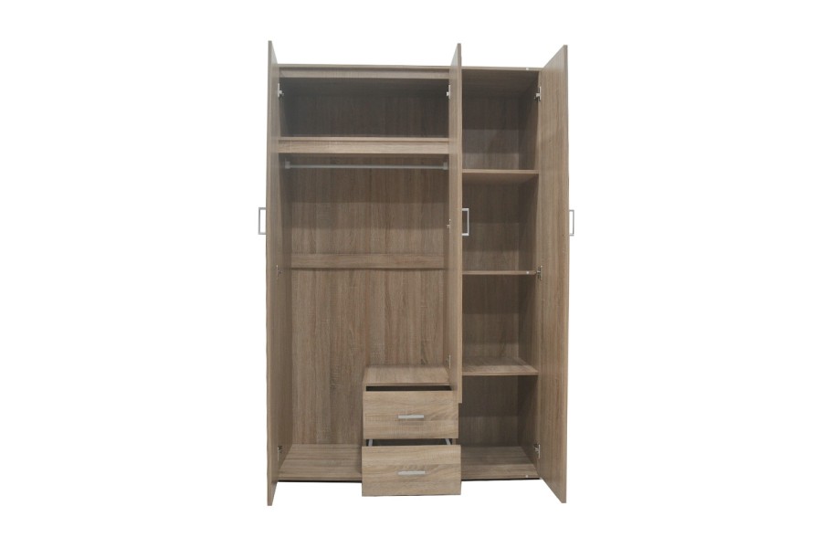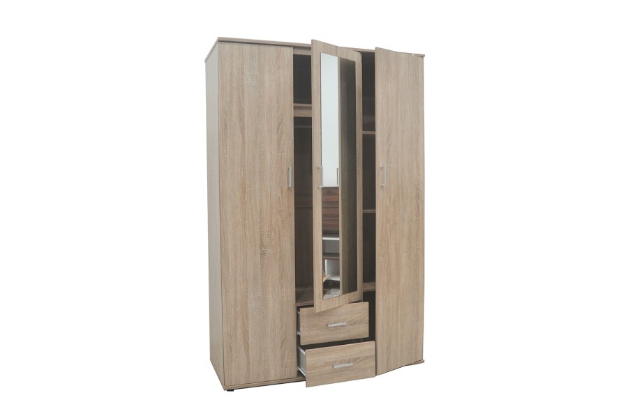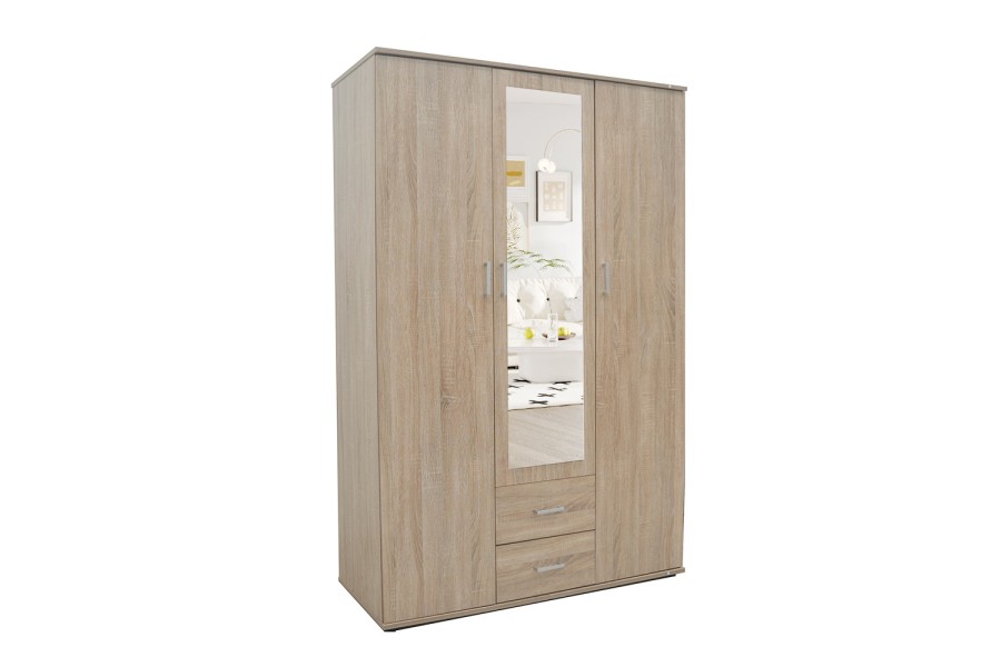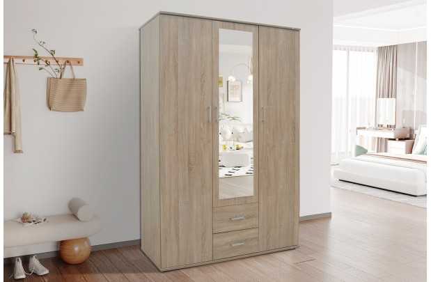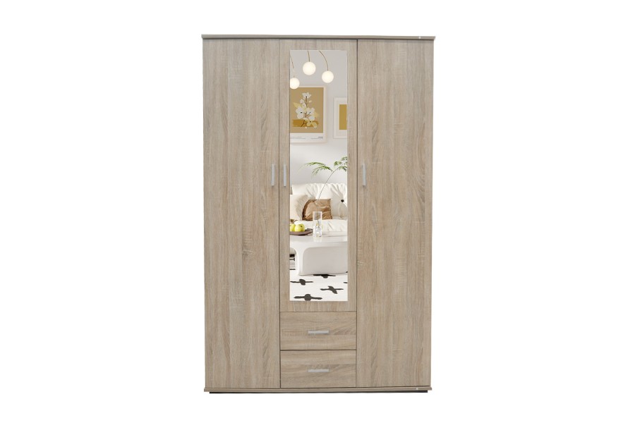 Faites de l’armoire ‘Marc’ 3 portes, 2 tiroirs avec miroir - Finition Sonoma la pièce maîtresse de votre espace. Offrant un design raffiné et un rangement maximal, elle est l’alliée parfaite pour un intérieur bien organisé et moderne.