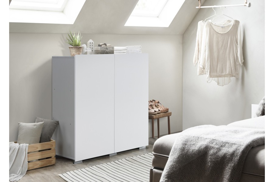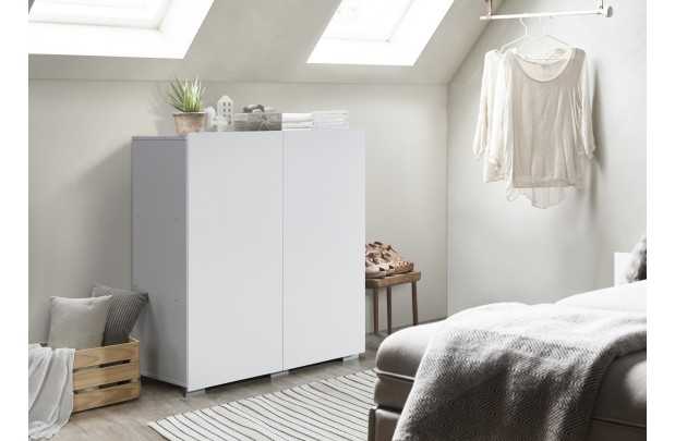 Superbe armoire à 2 portes ouvrantes, une porte est composée de 2 étagères, et la deuxième porte est composée de 2 étagères inférieures et supérieures. Elle est fabriquée en panneaux de particules de haute qualité. Son style classique et ses jolis pieds lui donnent un charme inoubliable, parfaite pour un rangement optimal! Le coloris blanc a l'avantage d'être très doux.