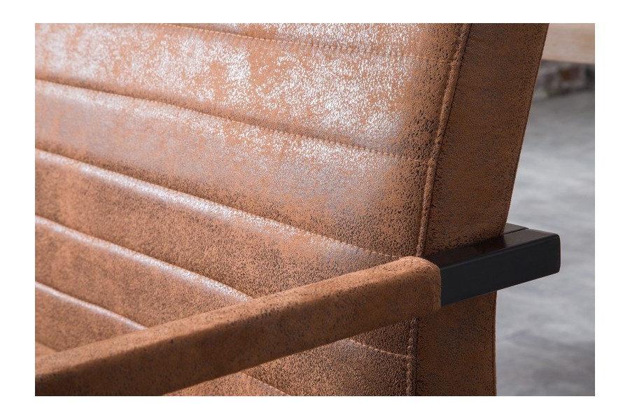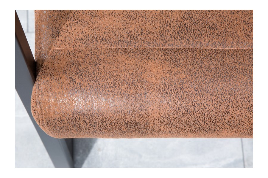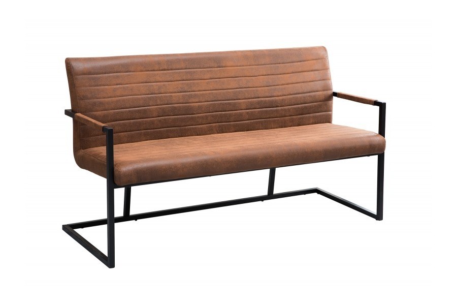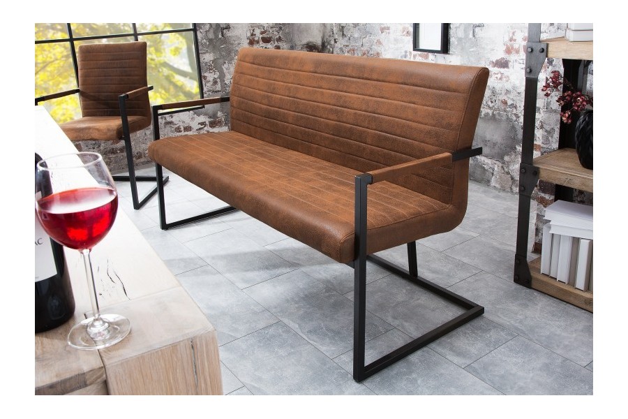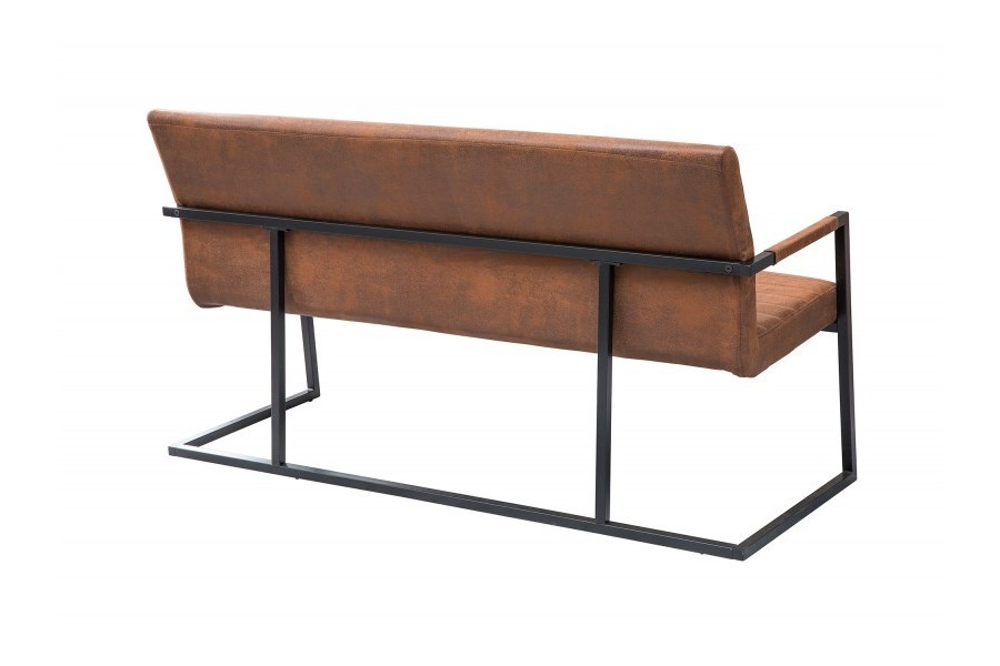 Banc design rembourré coloris brun vintage en mircofibre avec piétement en métal