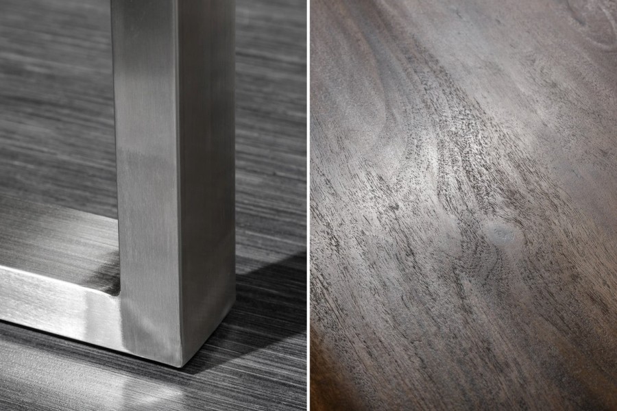 Matières : bois massif, acacia, cadre en acier chromé