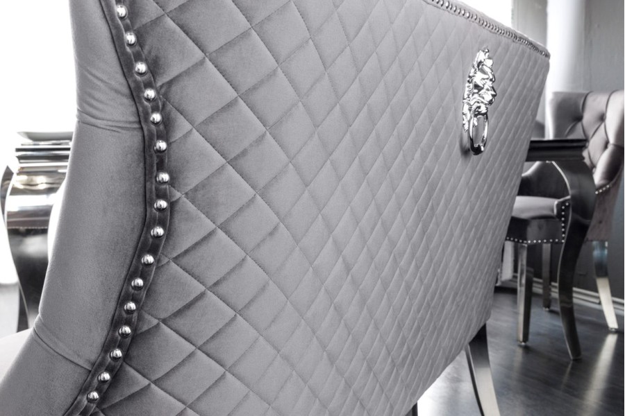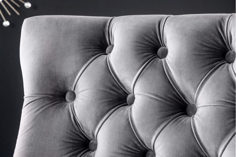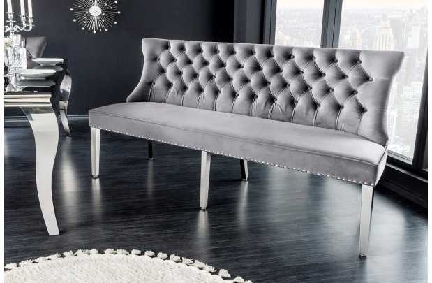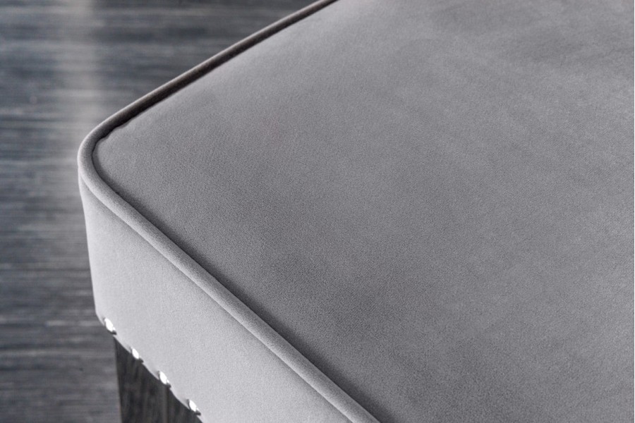 Transformez votre espace avec cette banquette en velours gris au style baroque. Elle apportera une élégance sophistiquée à votre intérieur, que ce soit dans le salon, la chambre ou le hall d'entrée.