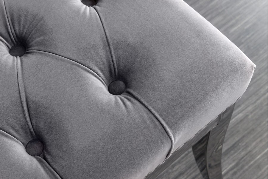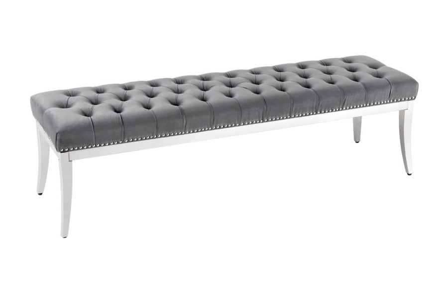 - Pieds / Rivets : Argent - Les pieds en acier inoxydable poli et les rivets argentés complètent l'aspect luxueux du banc.