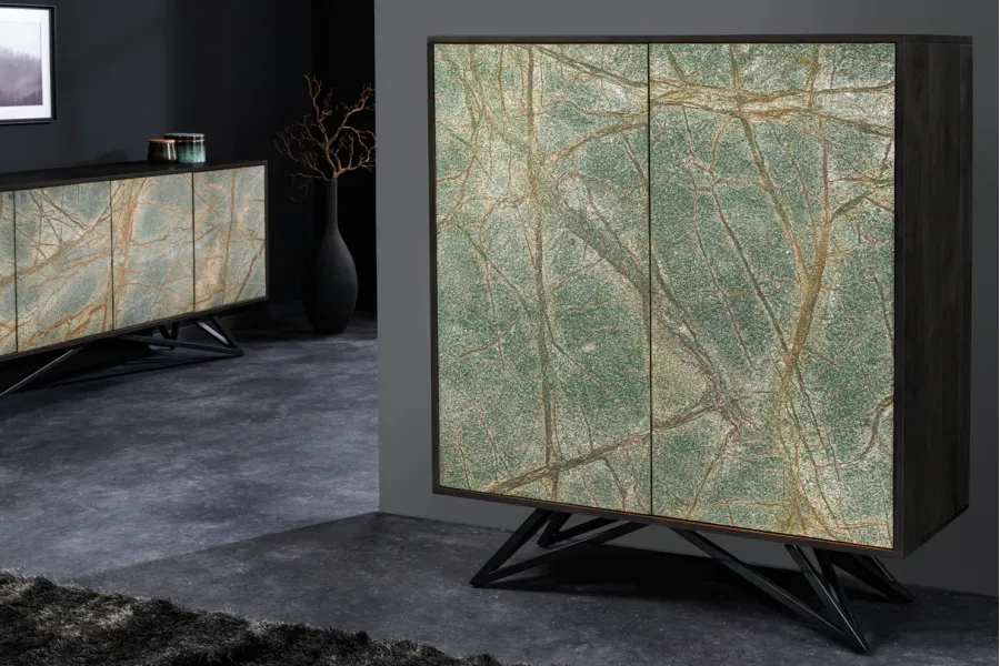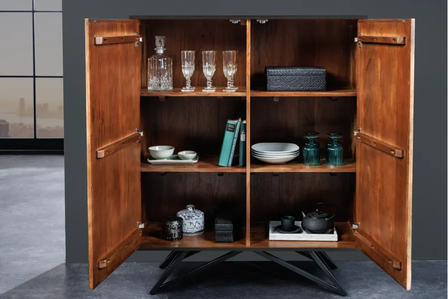 Matériel: bois massif, mangue, scellé, aspect usé laqué