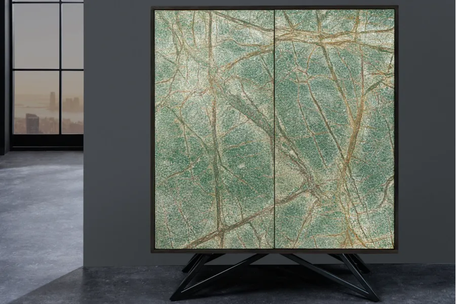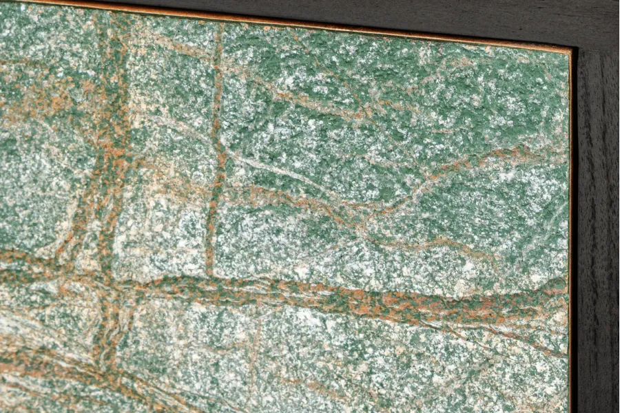 Le bois est assemblé dans un aspect de planche et présente de légères