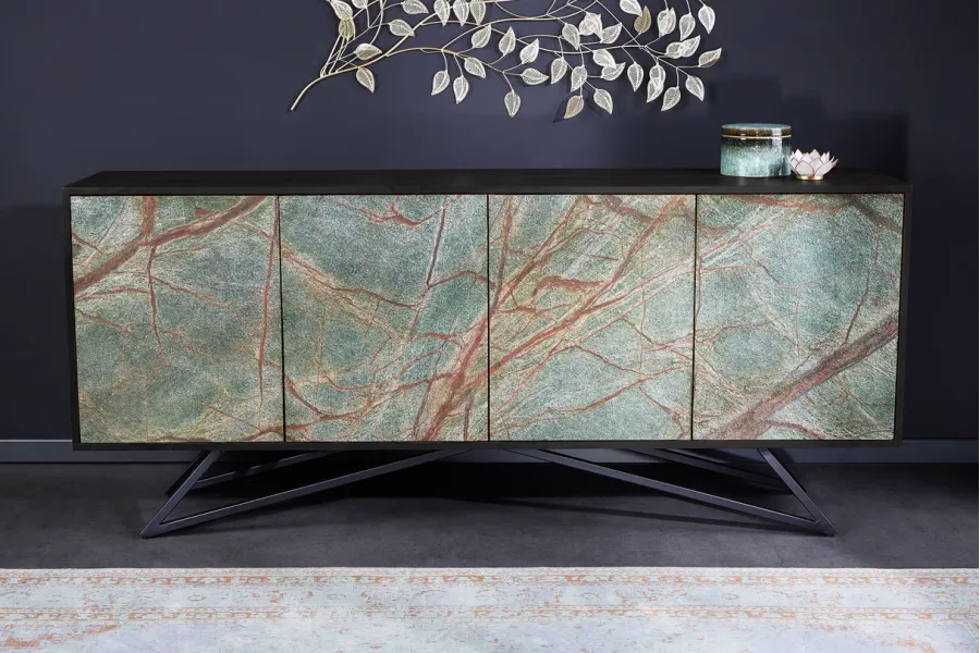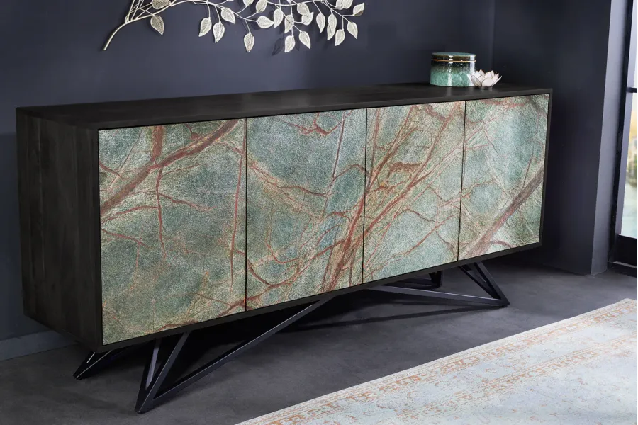 Avec le buffet Mountain Soul, vous apportez un meuble unique dans votre maison avec de véritables façades en pierre naturelle. Le buffet se distingue par sa composition matérielle exceptionnelle et son traitement innovant de matières premières naturelles.