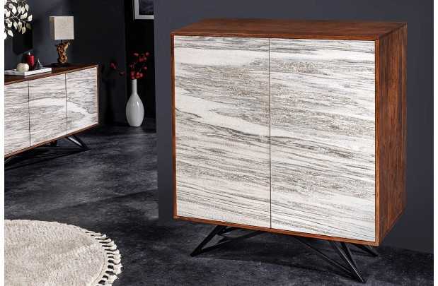 Buffet haut Mountain Soul 120cm en bois d'acacia placage pierre naturelle blanc