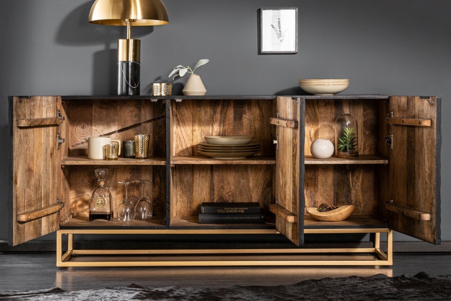 Laissez-vous séduire avec le charme et le luxe en ajoutant cet esthétique bahut "Golden Sunset" ! Coloris noir et son cadre doré apportera à votre séjour une touche chic et très classe ! Fabriqué soigneusement en bois massif de bonne qualité garantissant la robustesse et la résistance exemplaires pour une utilisation durable ! Assez fonctionnel, il dispose de plusieurs portes pour un rangement facile et bien classé de votre vaisselle et tout autre objet ! Il sera parfait aussi pour exposer vos plus beaux éléments décoratifs ! Ce bahut saura agrémenter à merveille votre maison et cela à un prix excellent !