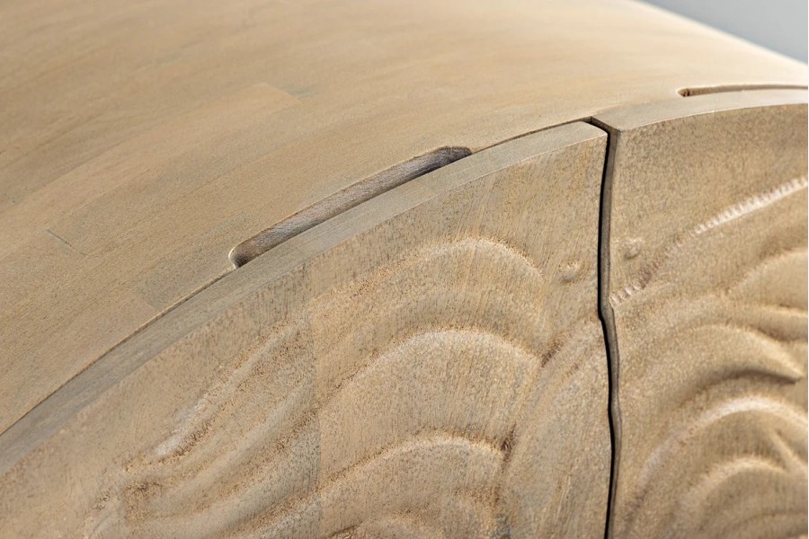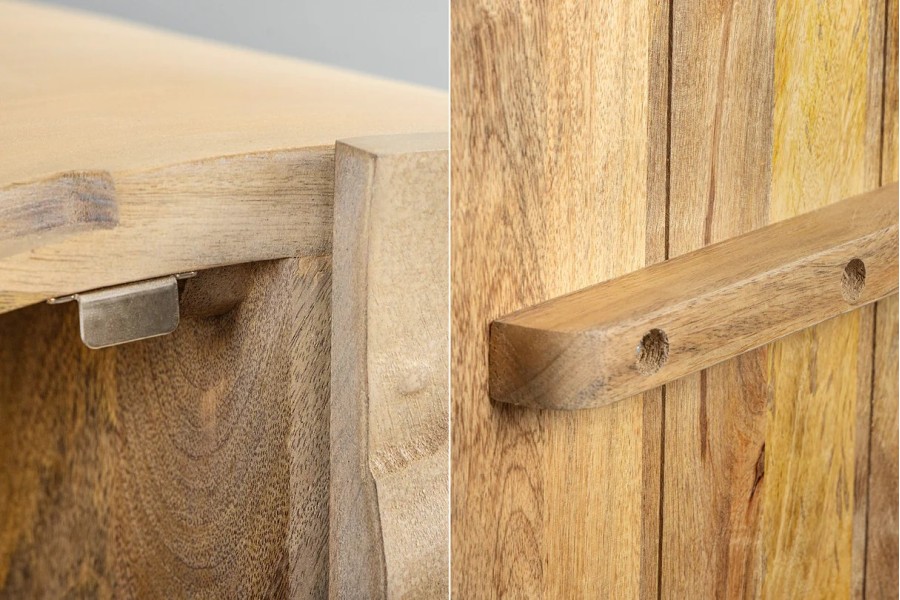 - Bois de manguier massif verni : robuste et raffiné, avec une texture naturelle sublimée par la finition blanche.