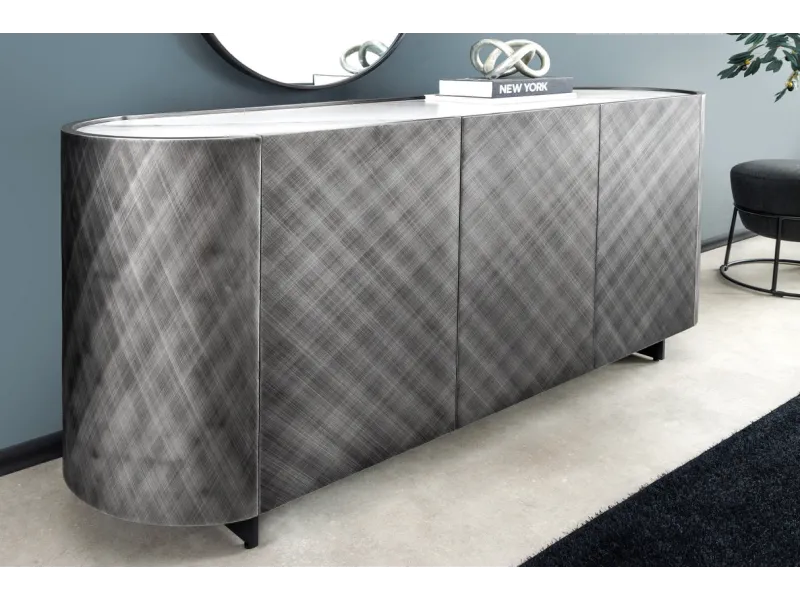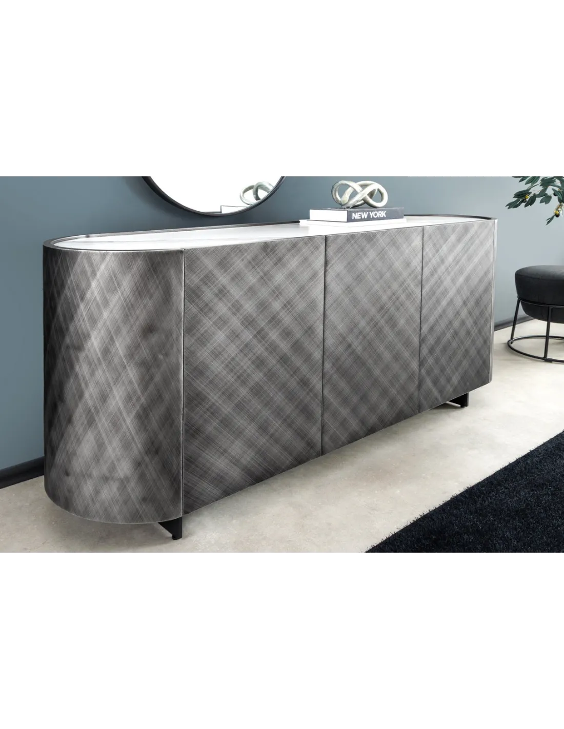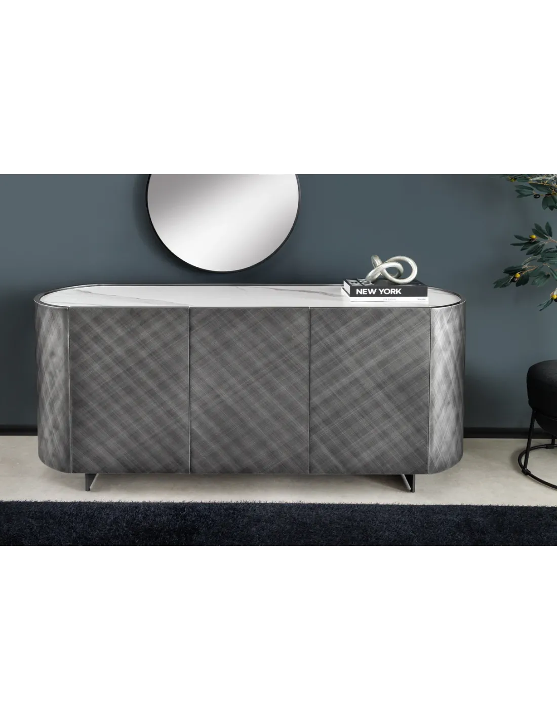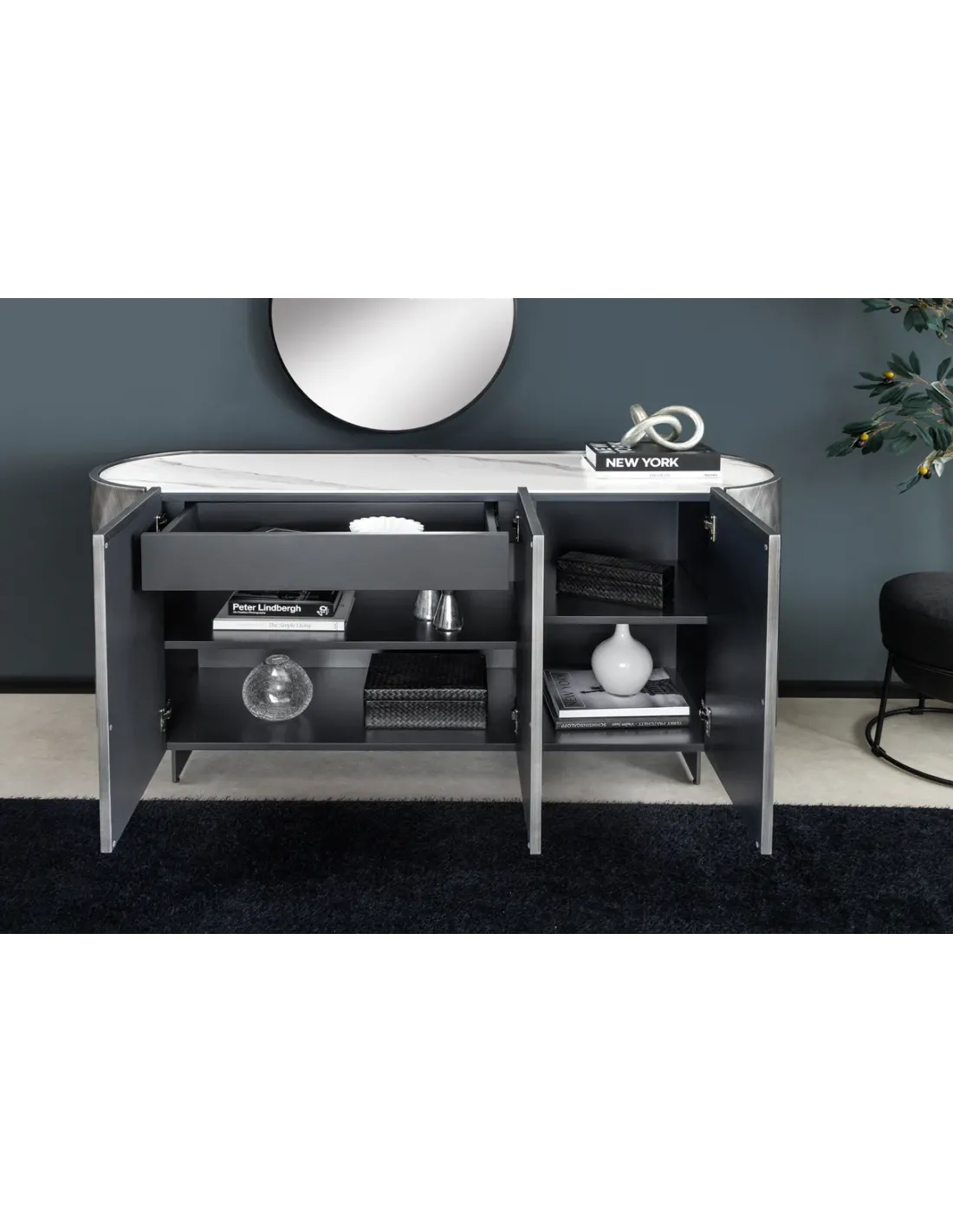 Le buffet REFLECTION allie design contemporain, rangement pratique et matériaux de qualité. Son effet 3D anthracite et son plateau en céramique effet marbre blanc en font un meuble central esthétique et fonctionnel, parfait pour organiser vos espaces avec style.