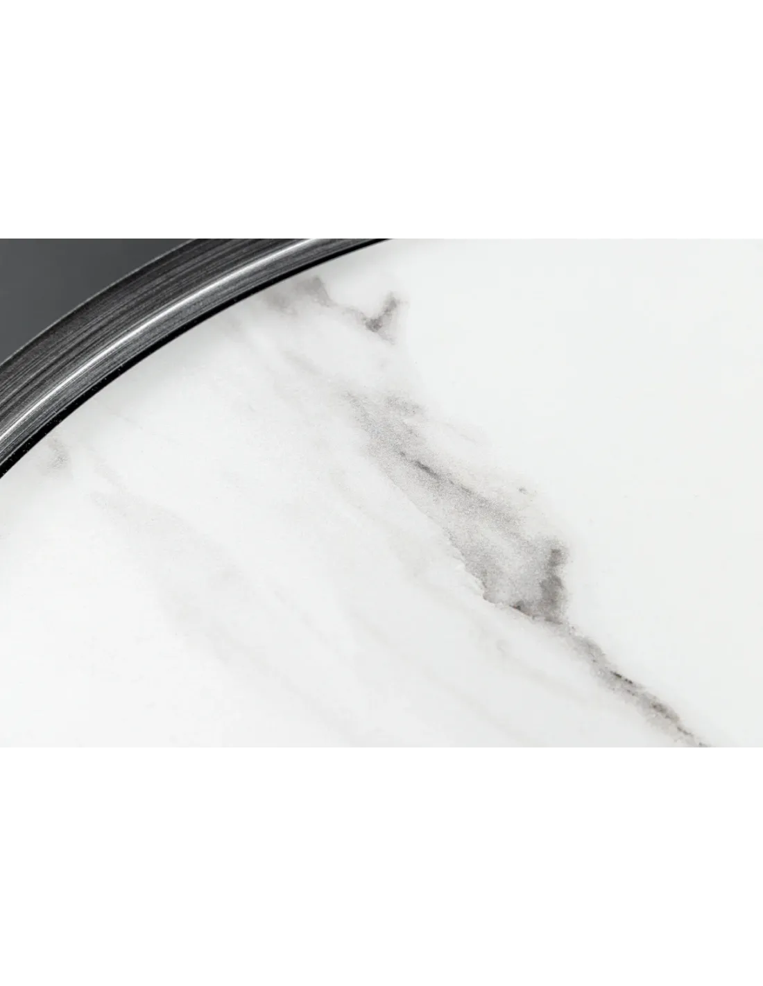 Design moderne et sophistiqué : façade effet 3D brossée en anthracite, plateau en céramique marbre blanc pour un style raffiné et contemporain.
