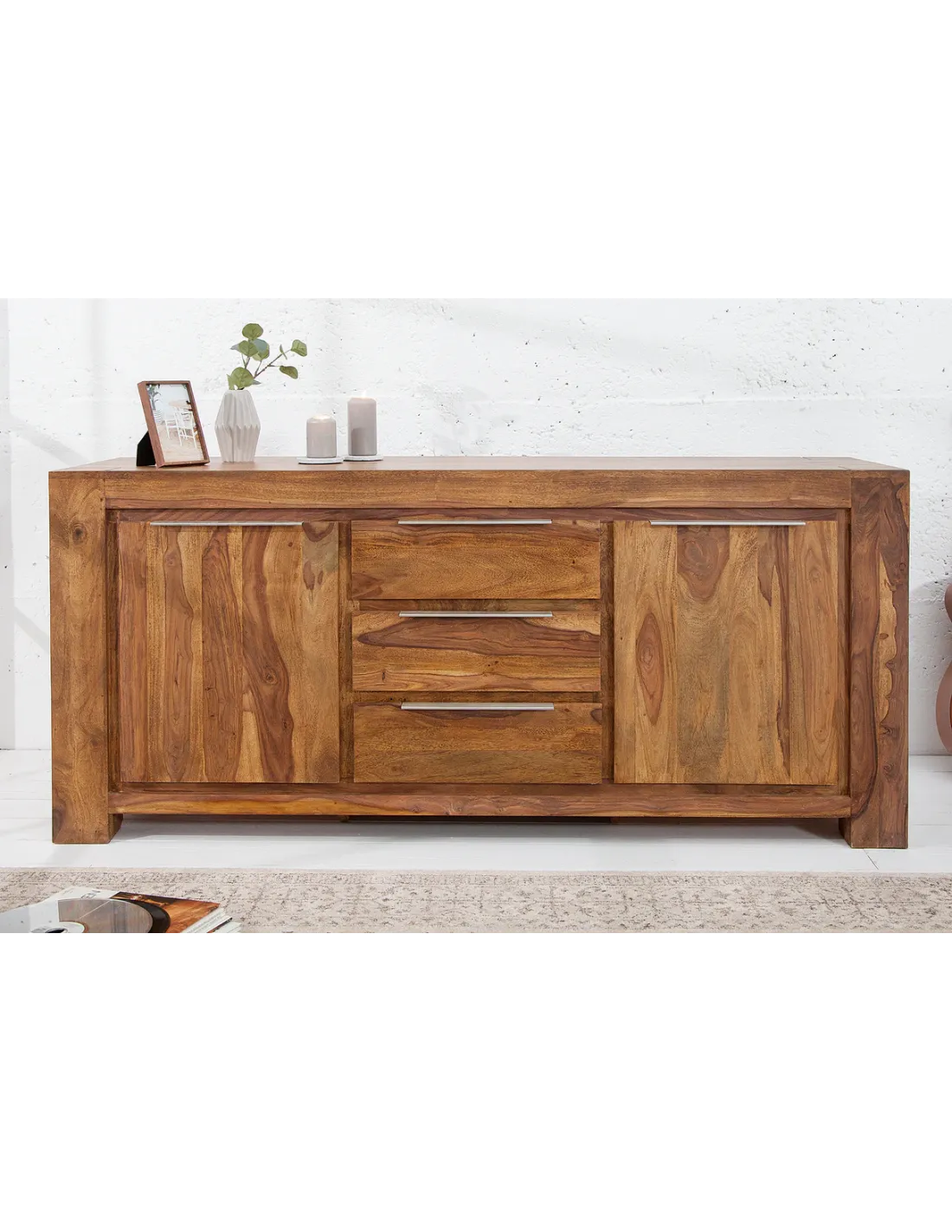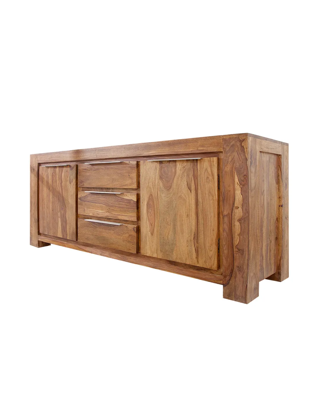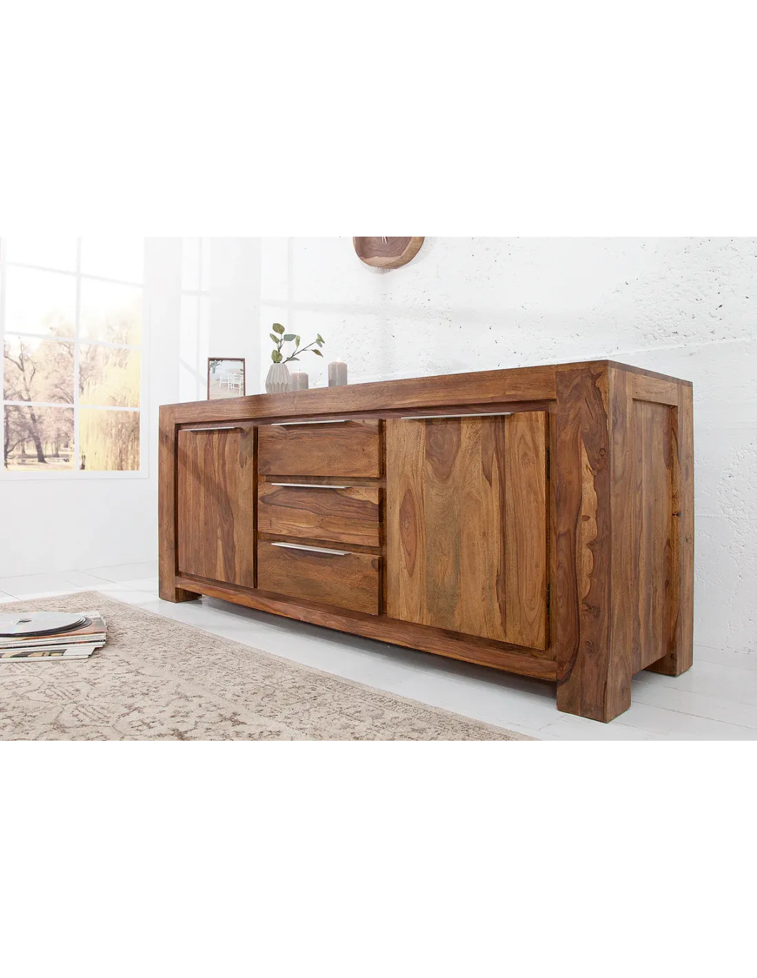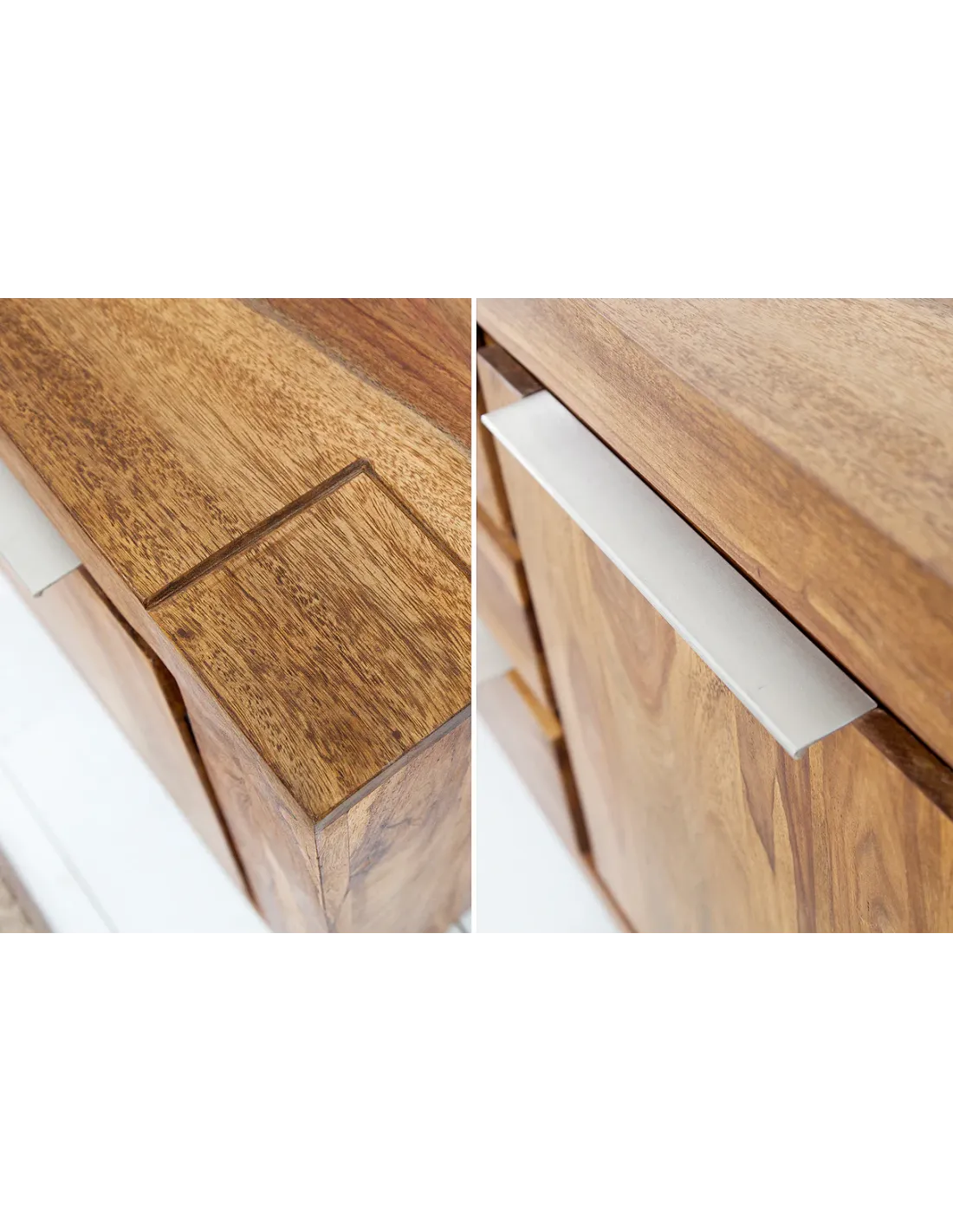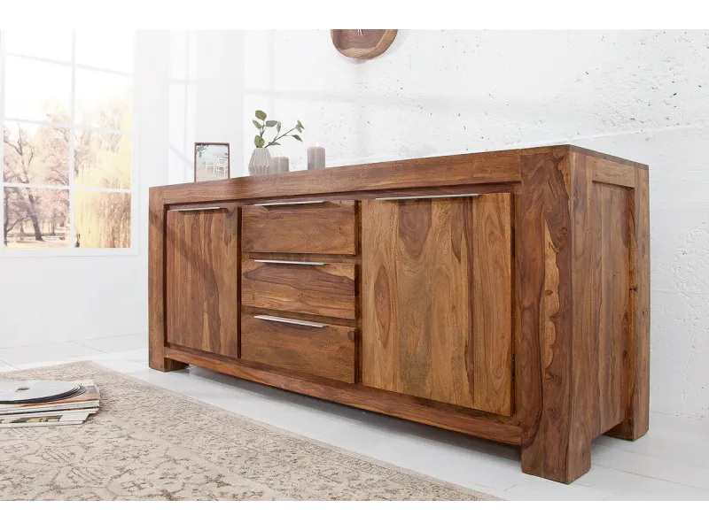Entièrement fabriqué en bois massif de sheesham, ce buffet est conçu pour durer dans le temps et apporter une touche authentique à votre intérieur. Chaque pièce est unique grâce aux variations naturelles du bois.