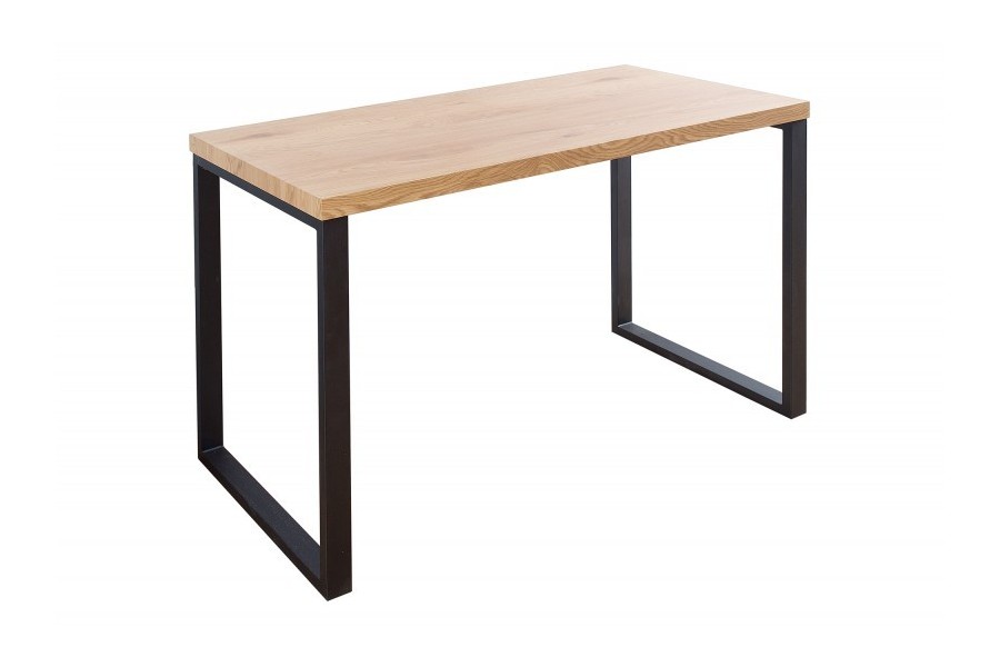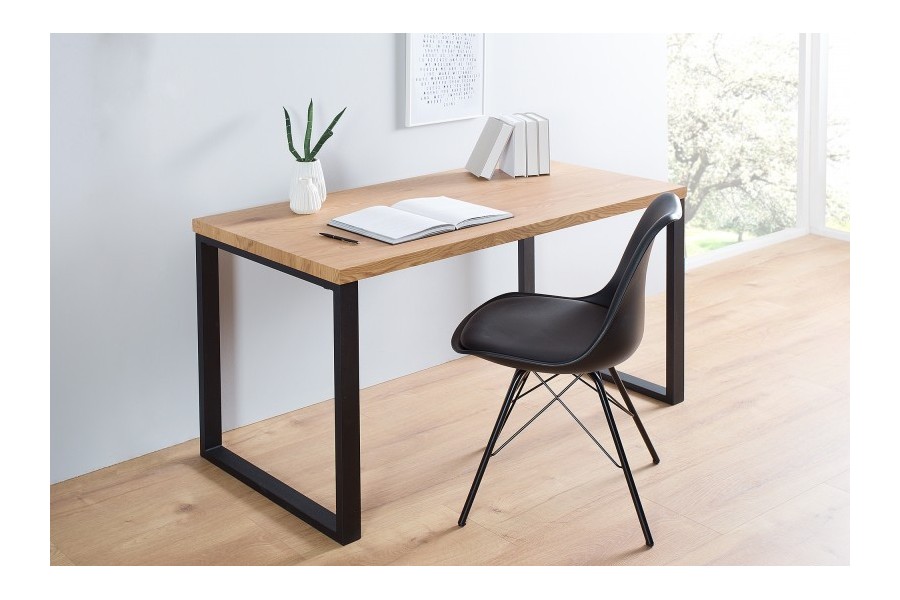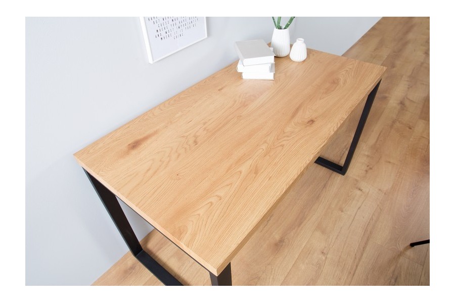 Une jolie table de bureau très pratique, faite pour vous ! Très robuste, son plateau de forme rectangulaire est fabriqué en bois Mdf coloris chêne naturel de haute qualité avec un piétement solide en métal noir, assez fonctionnel ! Du coup n'hésitez pas à profitez ce magnifique meuble à un prix extraordinaire !