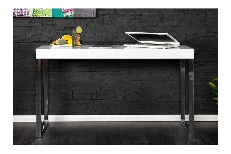 Ajoutez une touche attirante et luxueuse chez vous avec cet agréable bureau coloris blanc et chromé!
