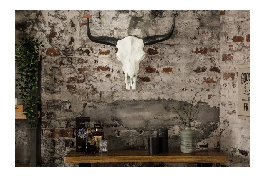 Ajoutez à votre intérieur une touche unique et séduisante, avec ce jolie trophée mural représentant un crâne de taureau coloris blanc et noir ! C'est un véritable objet d'art qui saura sublimer à merveille le mur sur lequel il sera accroché ! Donc le charme de la nature sera présent chez vous !