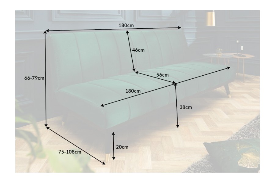 assise: 180cm x 38cm x 56cm (LxHxP)