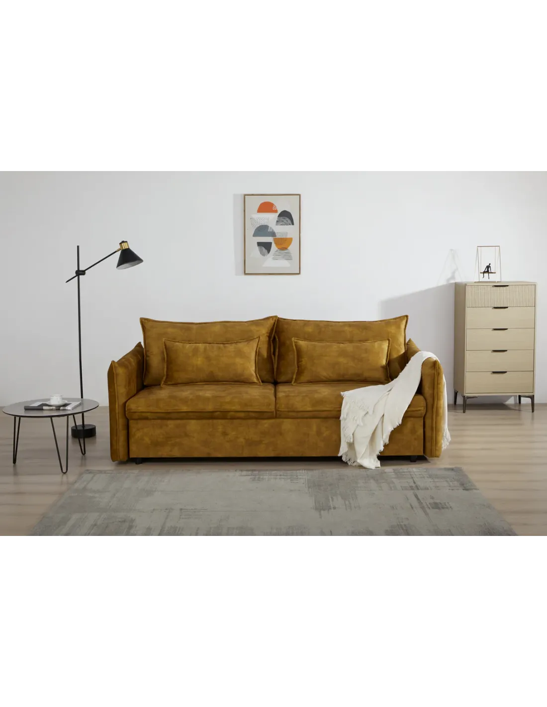 ✨ Le canapé-lit APPARTEMENT en velours jaune moutarde est le choix parfait pour ceux qui recherchent à la fois style, confort et fonctionnalité. Sa couleur éclatante en fait un véritable atout déco, tandis que son couchage intégré vous garantit praticité et gain de place.