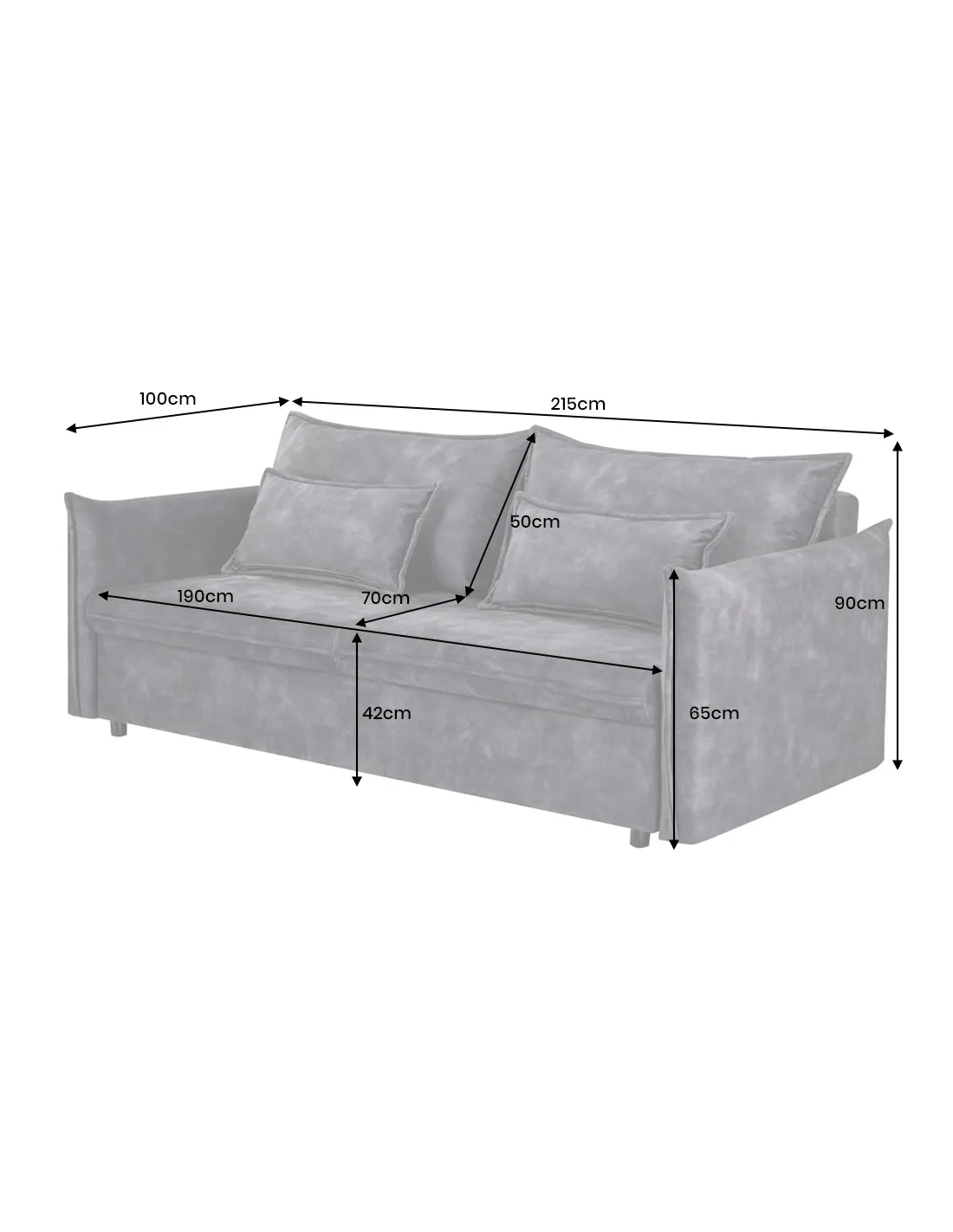 Dimensions totales : L 215 x P 100 x H 90 cm