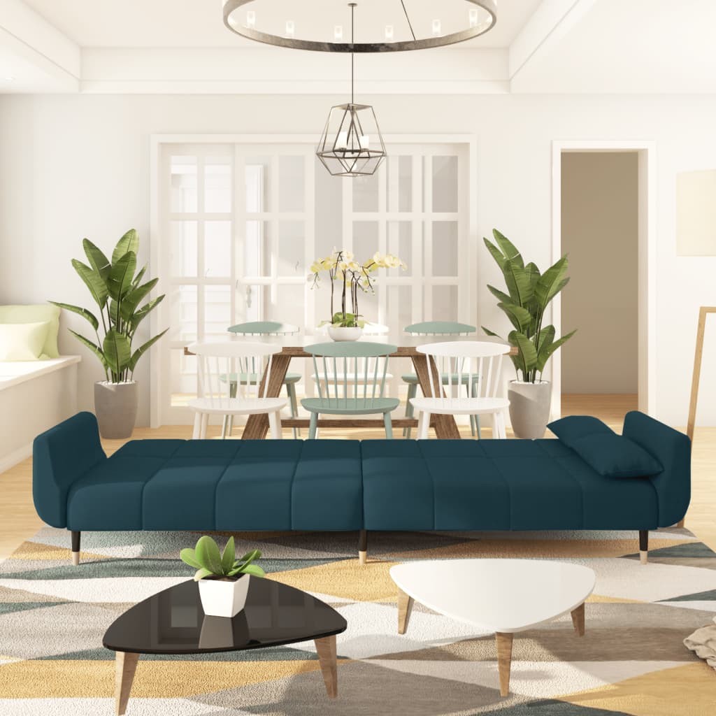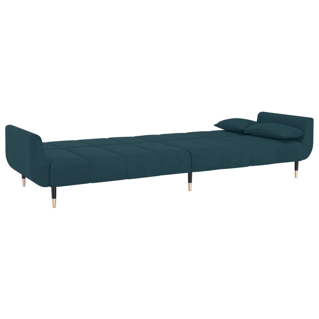 Ce canapé-lit présente un design convertible. Vous pouvez donc choisir une position assise, allongée ou couchée, selon vos préférences et votre confort. C'est le meuble idéal si vous avez besoin d'un espace de couchage supplémentaire pour vos amis et vos invités la nuit. Matériau doux et confortable : le tissu en velours présente une texture délicate et est doux et confortable au toucher.Dossier réglable : vous pouvez pousser les deux dossiers séparés partiellement ou complètement vers le bas pour créer un endroit idéal pour une sieste ou un lit double.Robuste et stable : le cadre en bois et les pieds en métal du canapé-lit assurent robustesse et stabilité.Deux coussins pour plus de confort : deux coussins sont inclus pour votre confort.