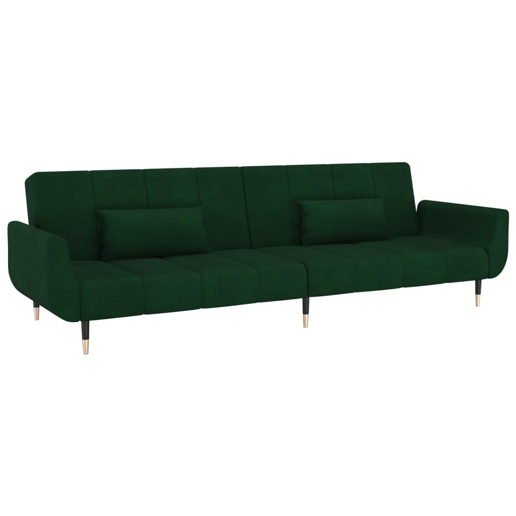 Ce canapé-lit présente un design convertible. Vous pouvez donc choisir une position assise, allongée ou couchée, selon vos préférences et votre confort. C'est le meuble idéal si vous avez besoin d'un espace de couchage supplémentaire pour vos amis et vos invités la nuit. Matériau doux et confortable : le tissu en velours présente une texture délicate et est doux et confortable au toucher.Dossier réglable : vous pouvez pousser les deux dossiers séparés partiellement ou complètement vers le bas pour créer un endroit idéal pour une sieste ou un lit double.Robuste et stable : le cadre en bois et les pieds en métal du canapé-lit assurent robustesse et stabilité.Deux coussins pour plus de confort : deux coussins sont inclus pour votre confort.