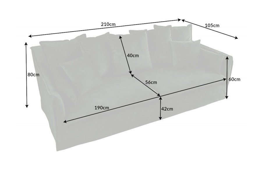 Dimensions généreuses : 210 cm x 80 cm x 107 cm (LxHxP), offrant suffisamment d'espace pour accueillir toute la famille.