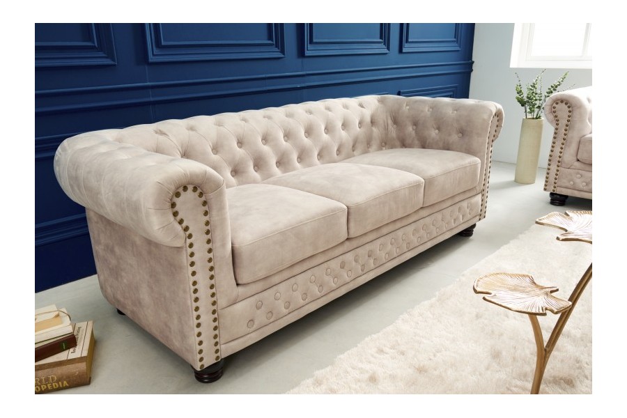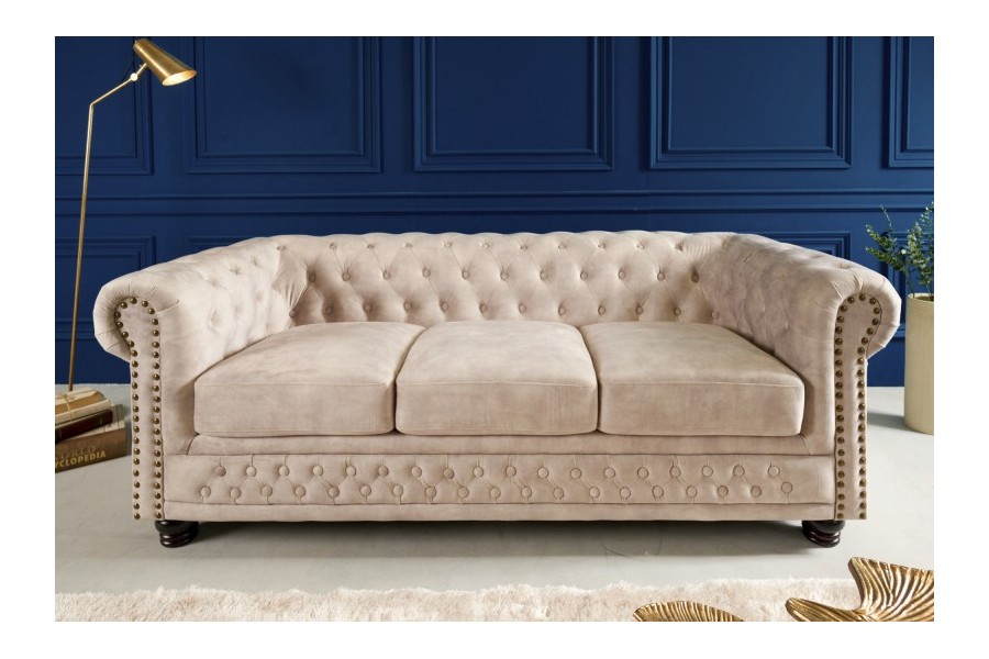 Le canapé CHESTERFIELD 3 places en velours champagne est idéal pour ceux qui recherchent un meuble élégant, confortable et intemporel. Son design iconique apporte du cachet et du prestige à tout type d’intérieur, du plus classique au plus moderne.