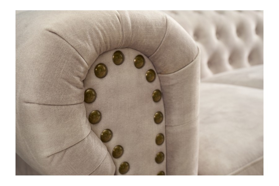✔ Capitonnage raffiné et accoudoirs roulés, caractéristiques du style Chesterfield.