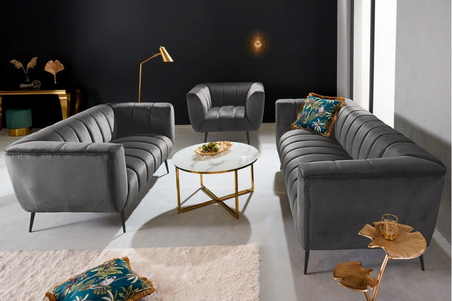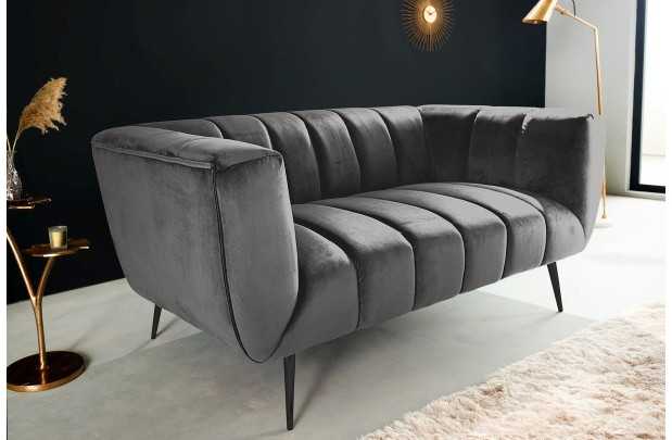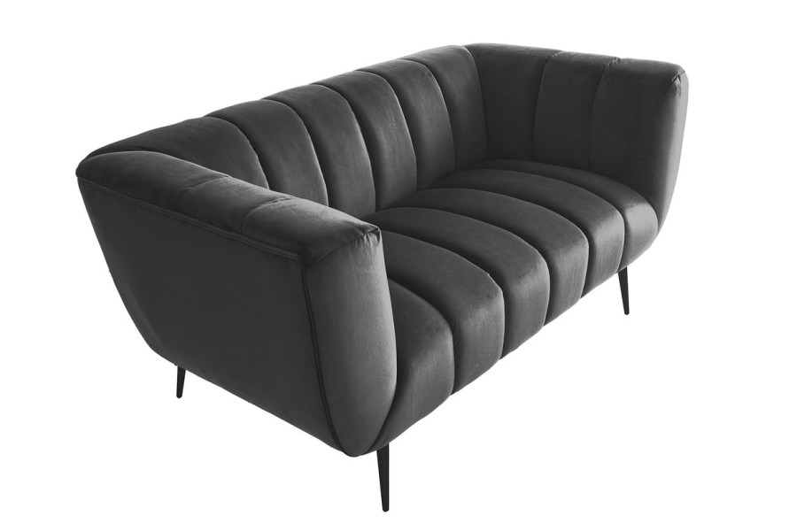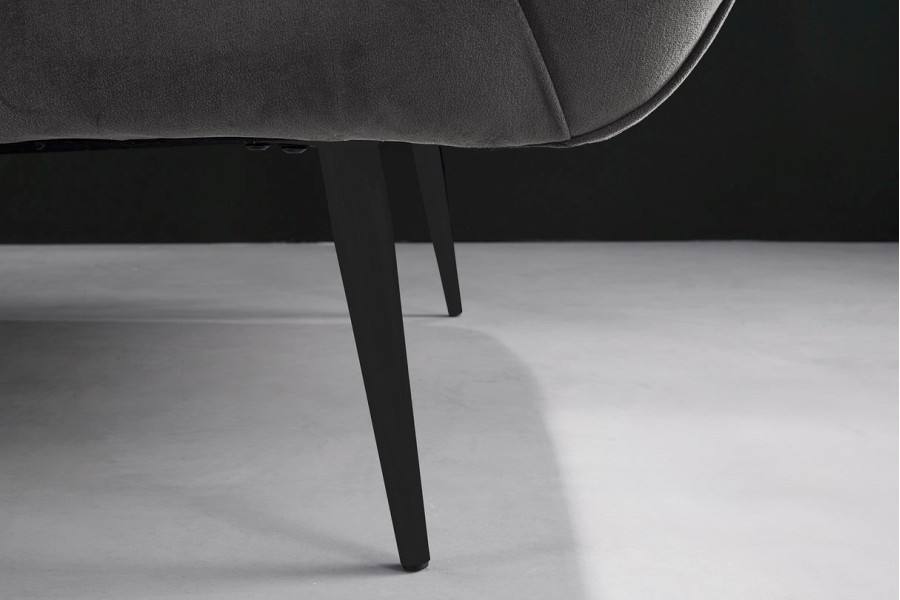 - Revêtu d’un velours texturé gris, ce canapé offre une finition luxueuse et une texture douce au toucher, idéale pour un salon chic et chaleureux.