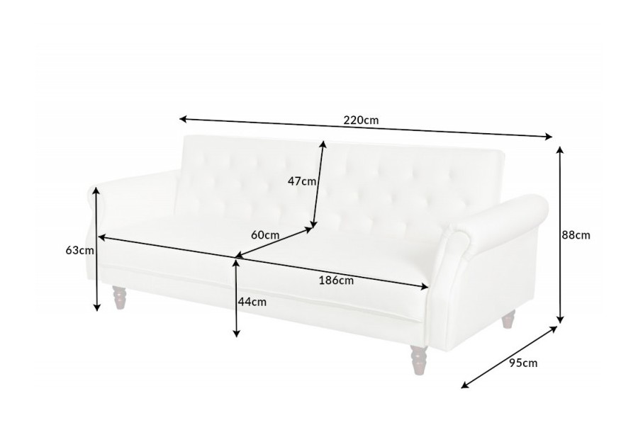 Grâce à ses dimensions généreuses (220 x 95 x 85 cm), ce canapé offre une assise spacieuse et confortable. Son siège de 186 cm de large et sa hauteur d’assise de 44 cm garantissent un excellent maintien et une position agréable pour de longues heures de détente.