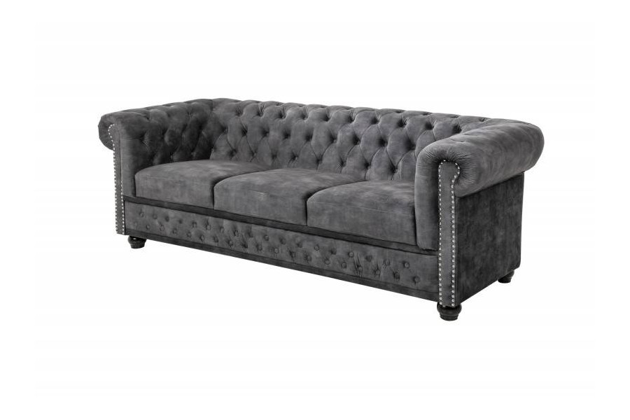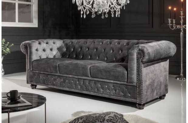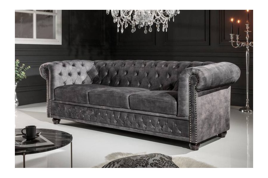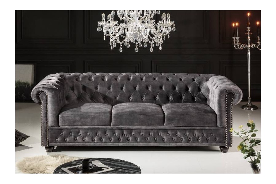Canapé Chic Chesterfield Design en Velours Gris 3 Places