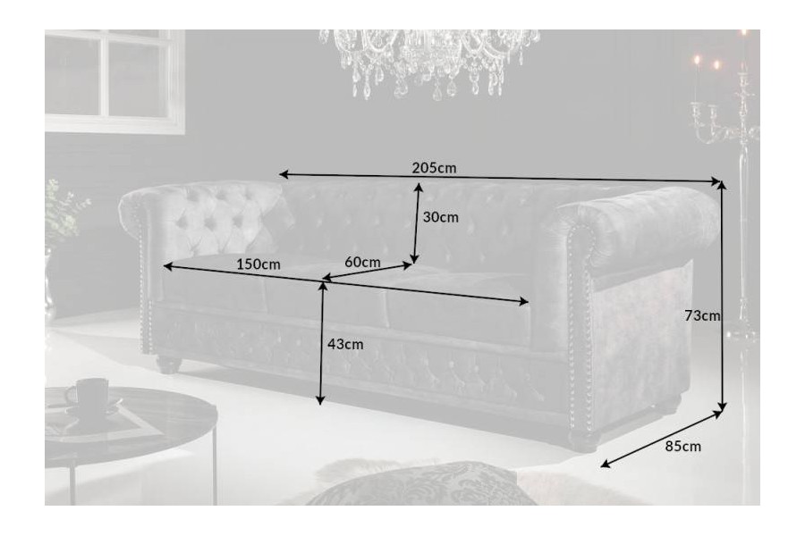 Apportez une touche d’élégance intemporelle à votre intérieur avec ce canapé Chesterfield 3 places en velours gris. Son design capitonné raffiné et ses accoudoirs roulés emblématiques font de ce canapé une pièce maîtresse pour un salon chic et sophistiqué. Conçu avec un châssis robuste en bois massif, il garantit une durabilité exceptionnelle. Son revêtement en velours haut de gamme, doux et soyeux, offre un confort optimal tout en sublimant votre décoration intérieure. Idéal pour un salon classique moderne, un intérieur industriel ou un style vintage, ce canapé allie confort, prestige et résistance.