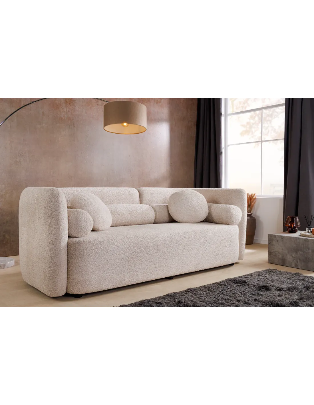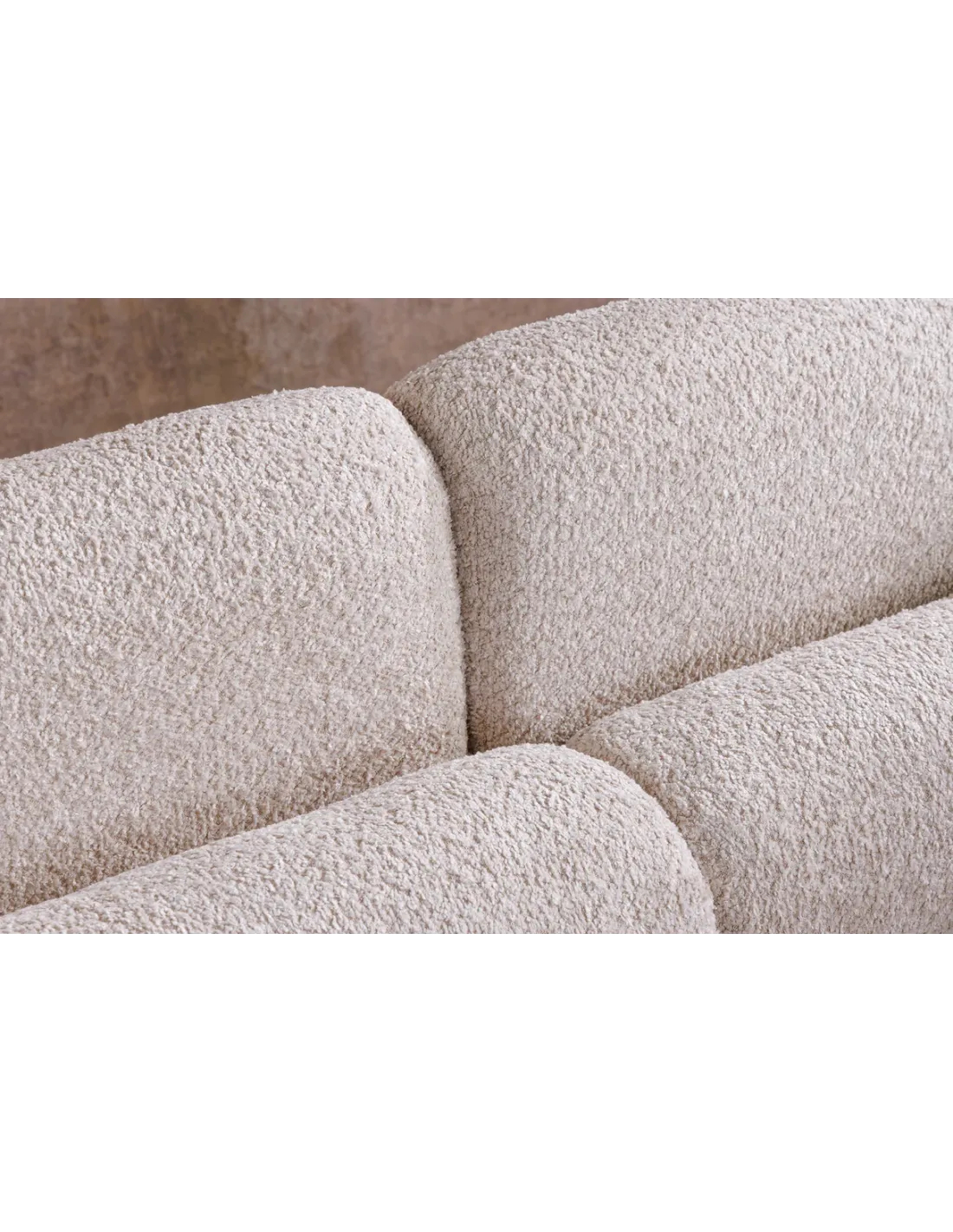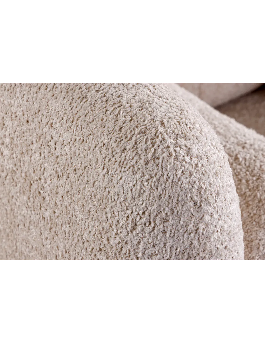 Un design inspiré du style vintage chic, revisité avec des matériaux contemporains. Parfait pour un intérieur bohème, moderne ou classique. Avec son tissu bouclé beige intemporel et ses lignes arrondies, ce canapé apportera élégance et confort à votre pièce de vie.