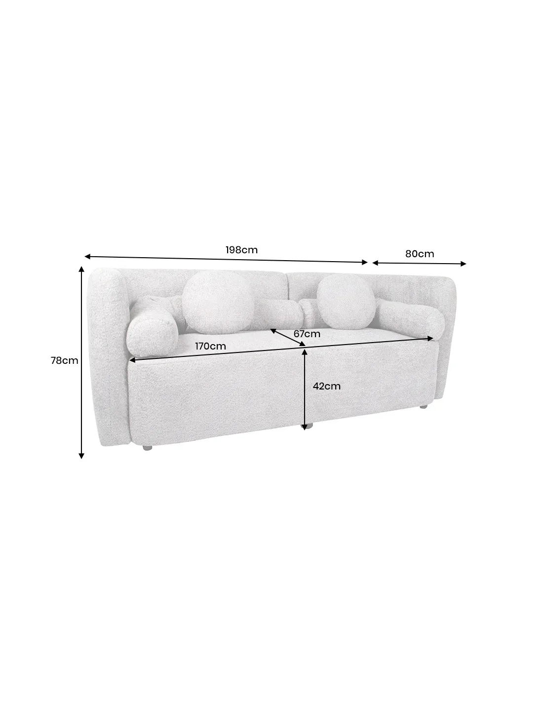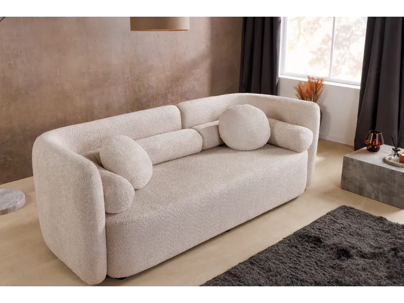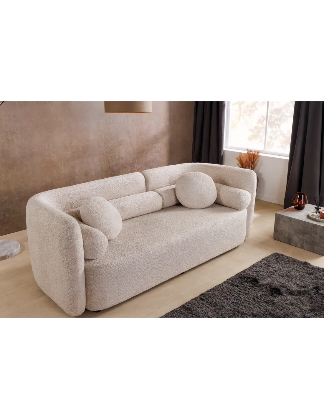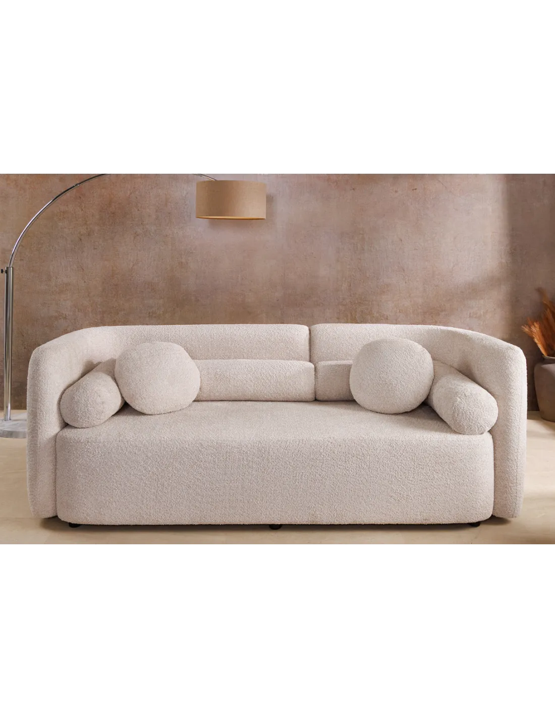 Un design inspiré du style vintage chic, revisité avec des matériaux contemporains. Parfait pour un intérieur bohème, moderne ou classique. Avec son tissu bouclé beige intemporel et ses lignes arrondies, ce canapé apportera élégance et confort à votre pièce de vie.