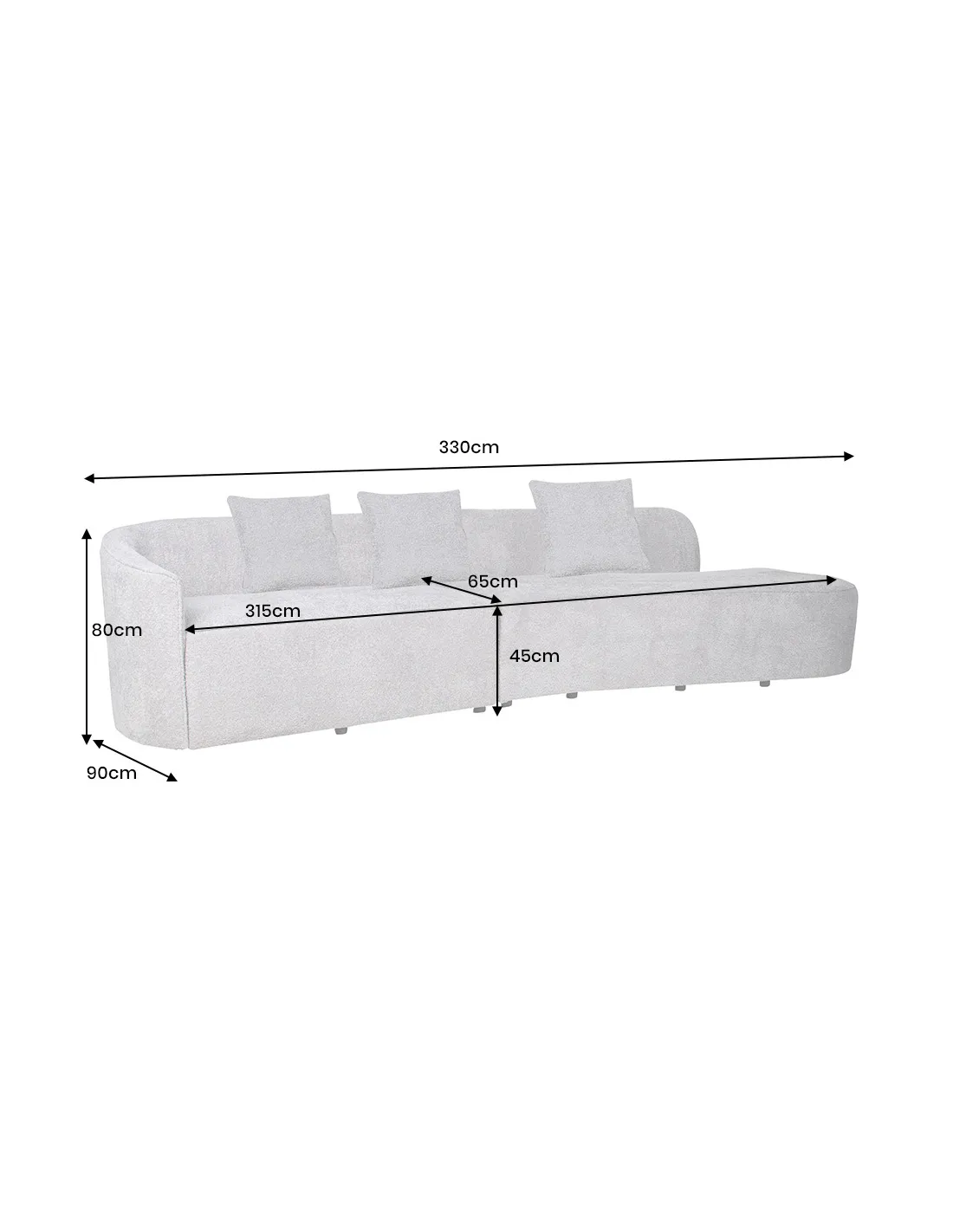 Dimensions totales : L 330 x P 90 x H 80 cm