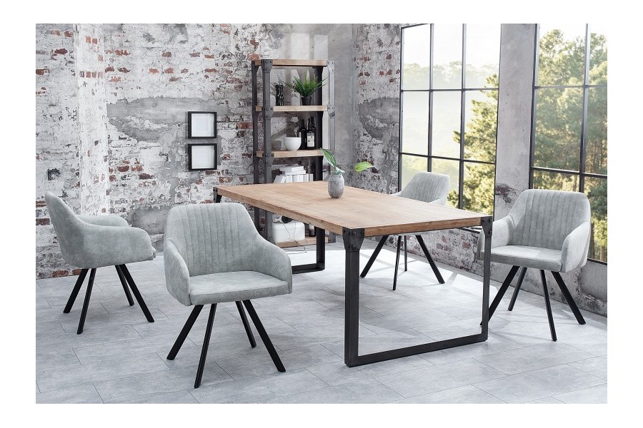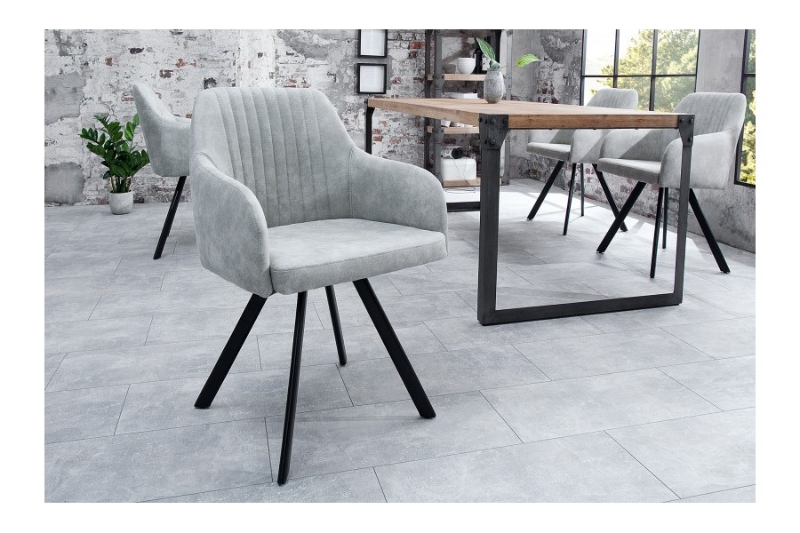 Chaise de salle à manger design vintage de couleur gris pierre en microfibre