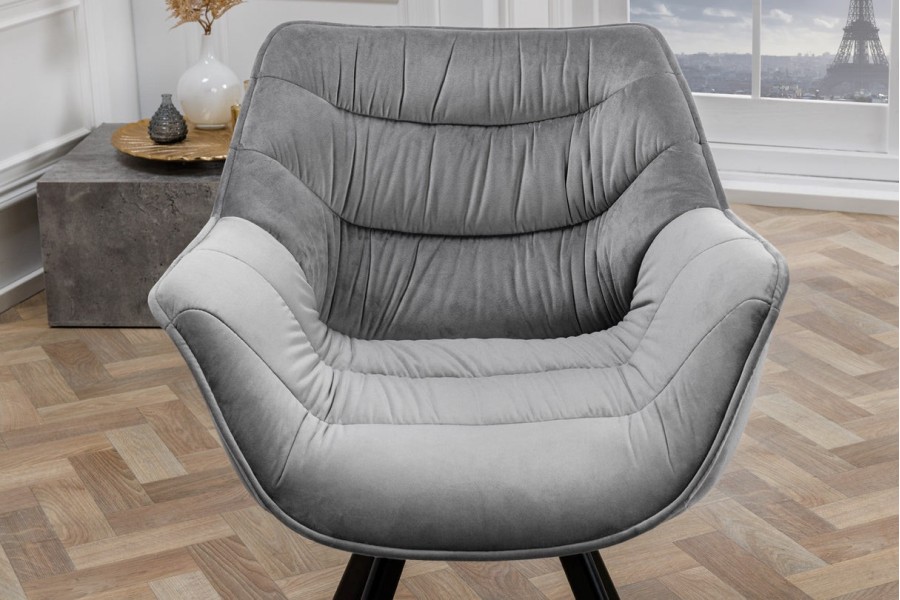 Design et Confort : Cette chaise combine le charme rétro avec un confort moderne. Le velours gris offre une sensation douce et luxueuse, idéale pour une utilisation prolongée. La structure métallique assure une robustesse et une durabilité exceptionnelles, tout en ajoutant une touche industrielle chic. La hauteur du dossier de 39 cm et les accoudoirs de 19 cm offrent un soutien et un confort supplémentaires, rendant cette chaise parfaite pour diverses utilisations.