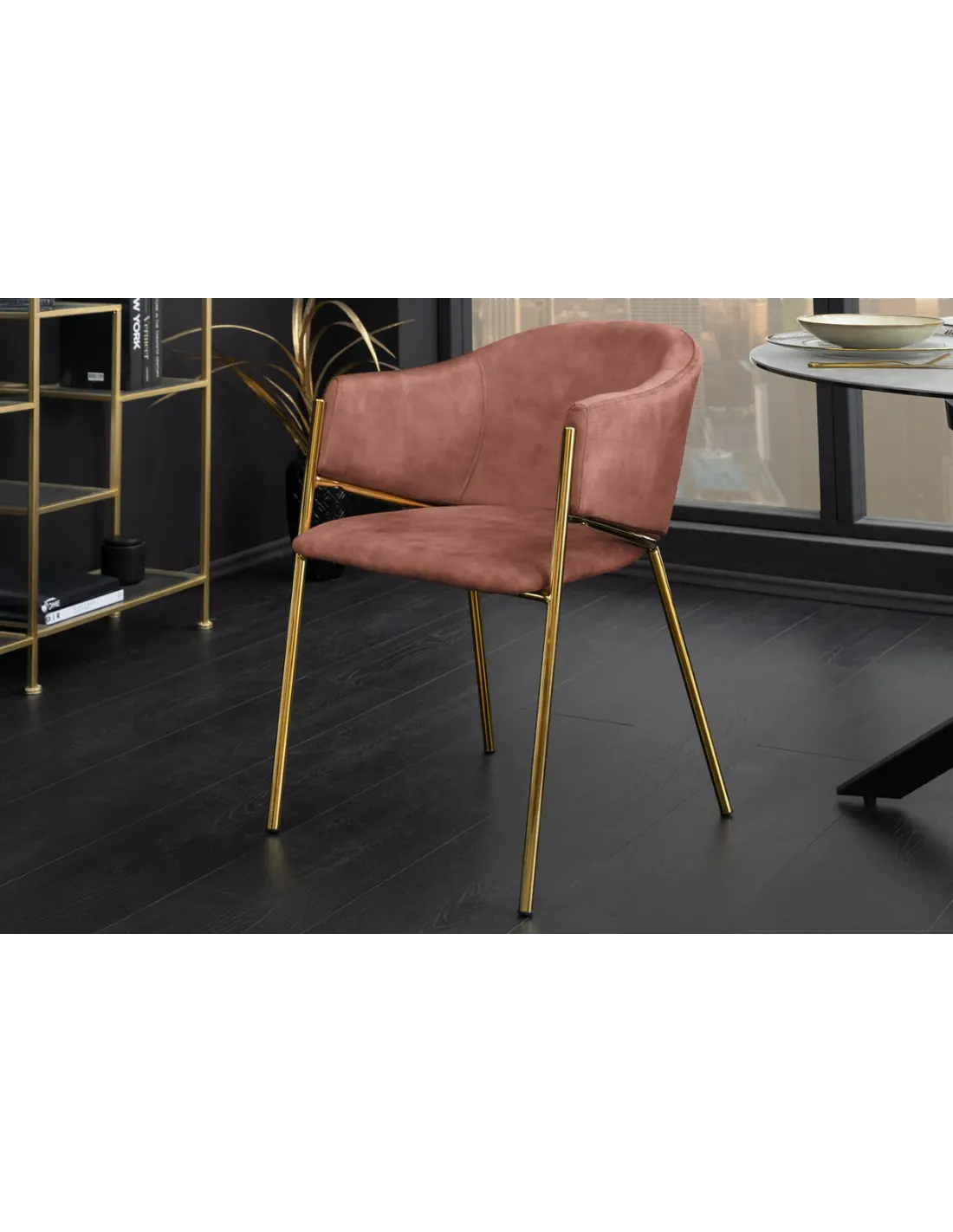 Association harmonieuse du velours rose tendance et du métal doré sophistiqué.
