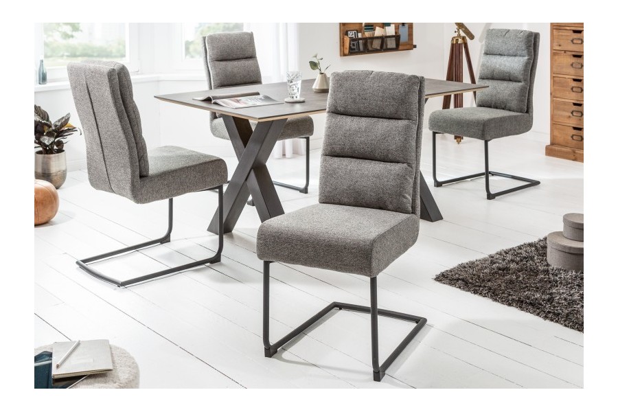 Cette chaise élégante sans effort et confort. Grâce à l’agréable tissu gris foncé de texture cantilever au toucher et aux pieds noirs peints en poudre, vous pouvez l’ajouter aux maisons, bureaux ou salles de réunion modernes et classiques. Vu la structure de son piètement il est flexible et ergonomique.
