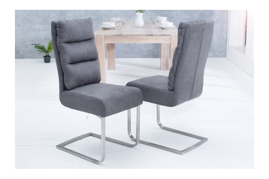 Design et Confort : Cette chaise combine un design rétro chic avec un confort moderne. La microfibre gris offre une texture douce et agréable, idéale pour une assise prolongée. La structure en inox brossé assure robustesse et durabilité, tout en ajoutant une touche industrielle élégante. La hauteur du dossier de 52 cm et les dimensions bien proportionnées de l'assise garantissent un excellent soutien et un confort optimal.
