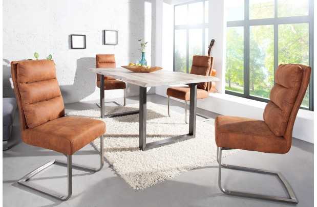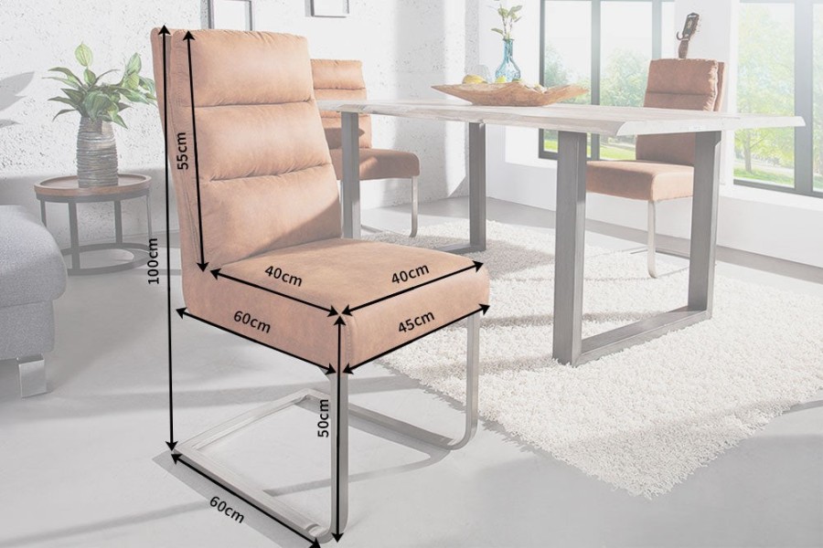 Design et Confort : Cette chaise combine un design rétro chic avec un confort moderne. La microfibre marron clair vintage offre une texture douce et agréable, idéale pour une assise prolongée. La structure en inox brossé assure robustesse et durabilité, tout en ajoutant une touche industrielle élégante. La hauteur du dossier de 52 cm et les dimensions bien proportionnées de l'assise garantissent un excellent soutien et un confort optimal.