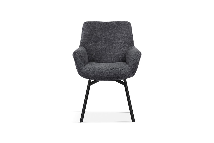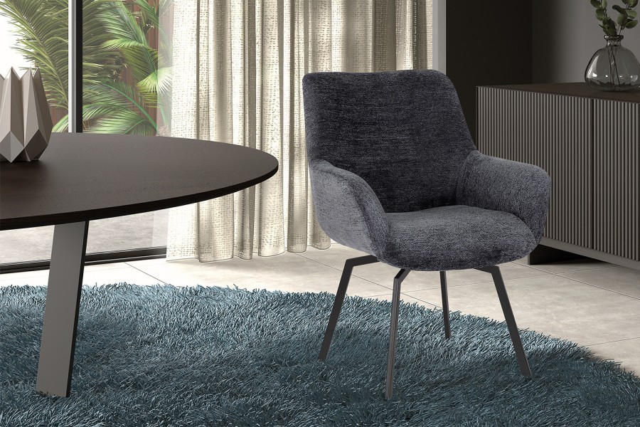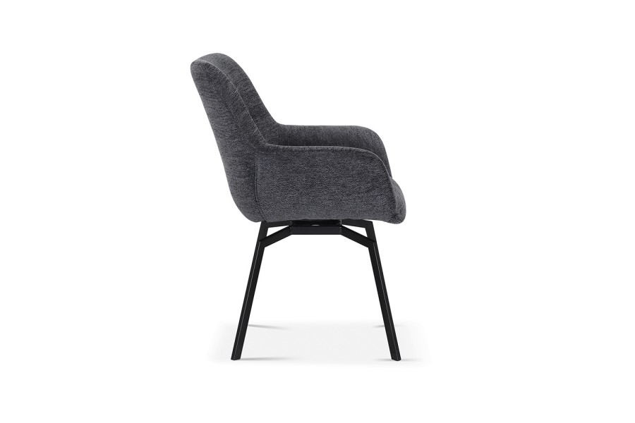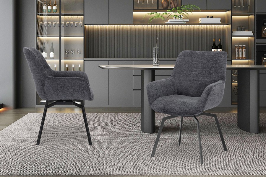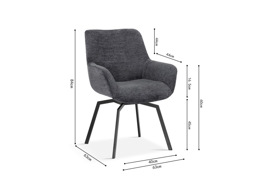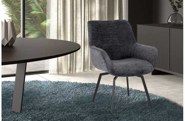 Modernité, confort et robustesse! Cette magnifique chaise pivotante avec accoudoir en velours côtelé coloris gris foncé apportera autour de votre table de salle à manger une touche chic et élégante, sa structure est effectuée avec une bonne qualité pour une solidité absolue, alors que sa revêtement est faite en velours de premier choix afin de vous garantir l'assise le plus confortable !