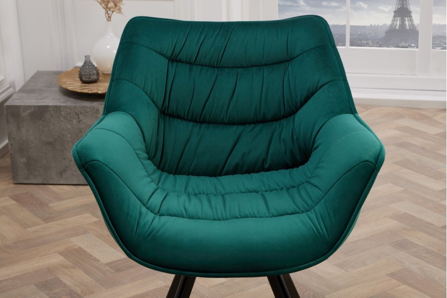 Design et Confort : Cette chaise combine le charme rétro avec un confort moderne. Le velours vert offre une sensation douce et luxueuse, idéale pour une utilisation prolongée. La structure métallique assure une robustesse et une durabilité exceptionnelles, tout en ajoutant une touche industrielle chic. La hauteur du dossier de 39 cm et les accoudoirs de 19 cm offrent un soutien et un confort supplémentaires, rendant cette chaise parfaite pour diverses utilisations.