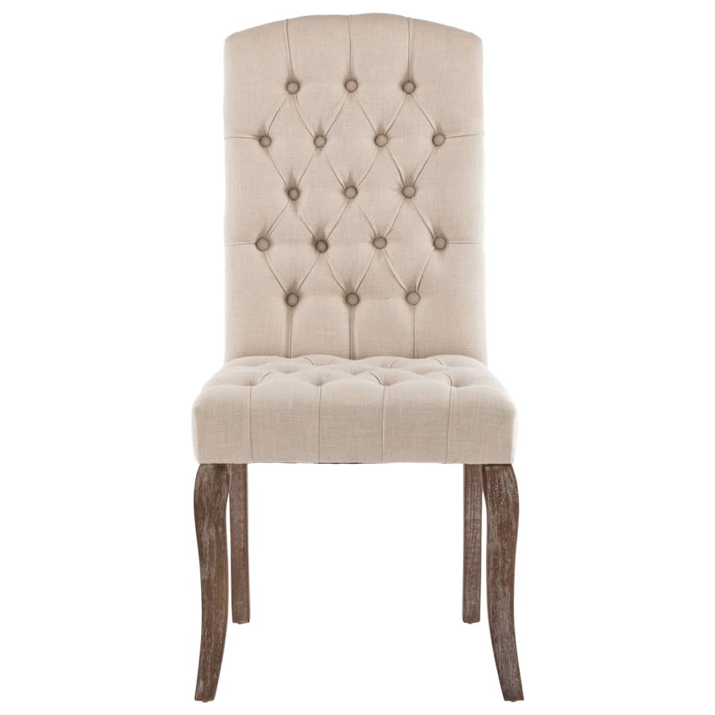 Nos chaises de salle à manger avec design à boutons ajoutent un aspect moderne à votre salle à manger et à toute autre pièce. Les chaises de salle à manger sont rembourrées en tissu à l'aspect de lin, ce qui les rend solides et durables. Grâce à son siège souple et à son dossier haut, notre ensemble de chaises de salle à manger vous offre un confort d’assise optimal. De plus, les pieds en bois d'hévéa ajoutent une super stabilité aux chaises, assurant une excellente durabilité. La livraison comprend 2 chaises de salle à manger.