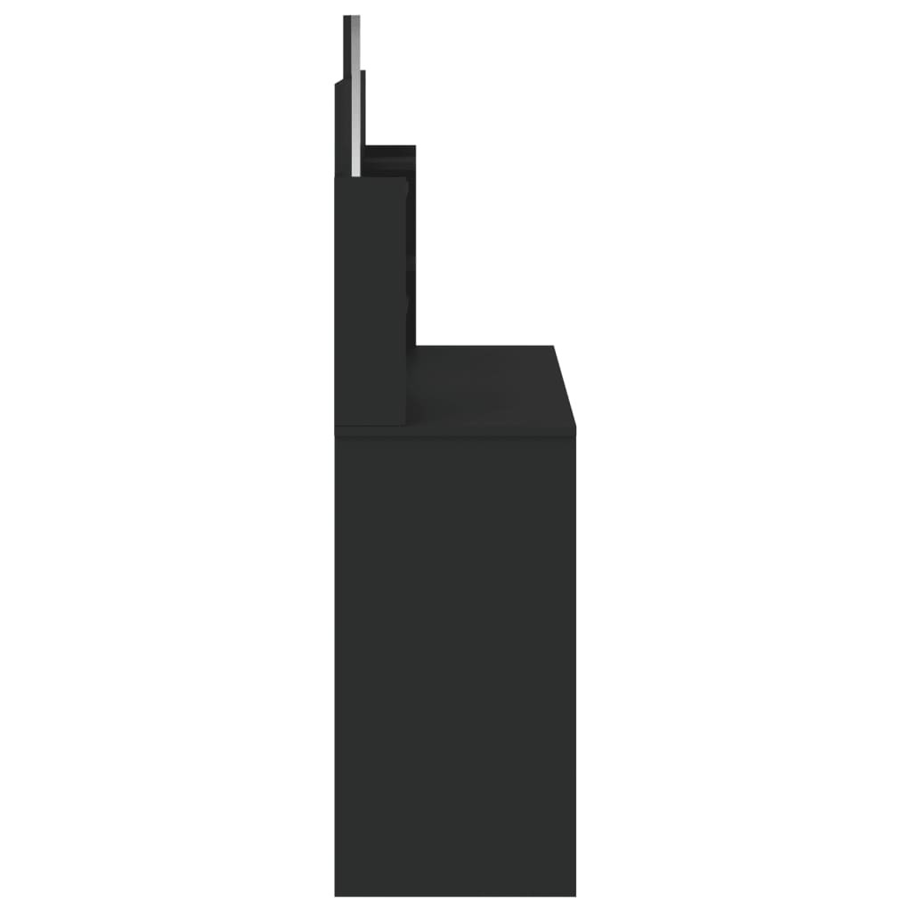 Dotée d'un aspect intemporel et raffiné, la coiffeuse avec miroir est un excellent supplément à la décoration de votre chambre à coucher tout en gardant vos cosmétiques à portée de main ! Matériau durable : le bois d'ingénierie est d'une qualité exceptionnelle avec une surface lisse et présente également résistance, stabilité et résistance à l'humidité. Fabriquée en bois d'ingénierie, cette table de maquillage est facile à nettoyer.Grand espace de rangement : cette coiffeuse comprend 2 tiroirs et 4 petites étagères, qui offrent suffisamment d'espace pour ranger vos essentiels cosmétiques bien organisés.Miroir utilitaire : le magnifique miroir inclus offre une vue dégagée pour l'application du maquillage et ajoute une touche élégante à la coiffeuse. Attention :Afin d'éviter qu'il ne bascule, ce produit doit être utilisé avec le dispositif de fixation murale fourni.