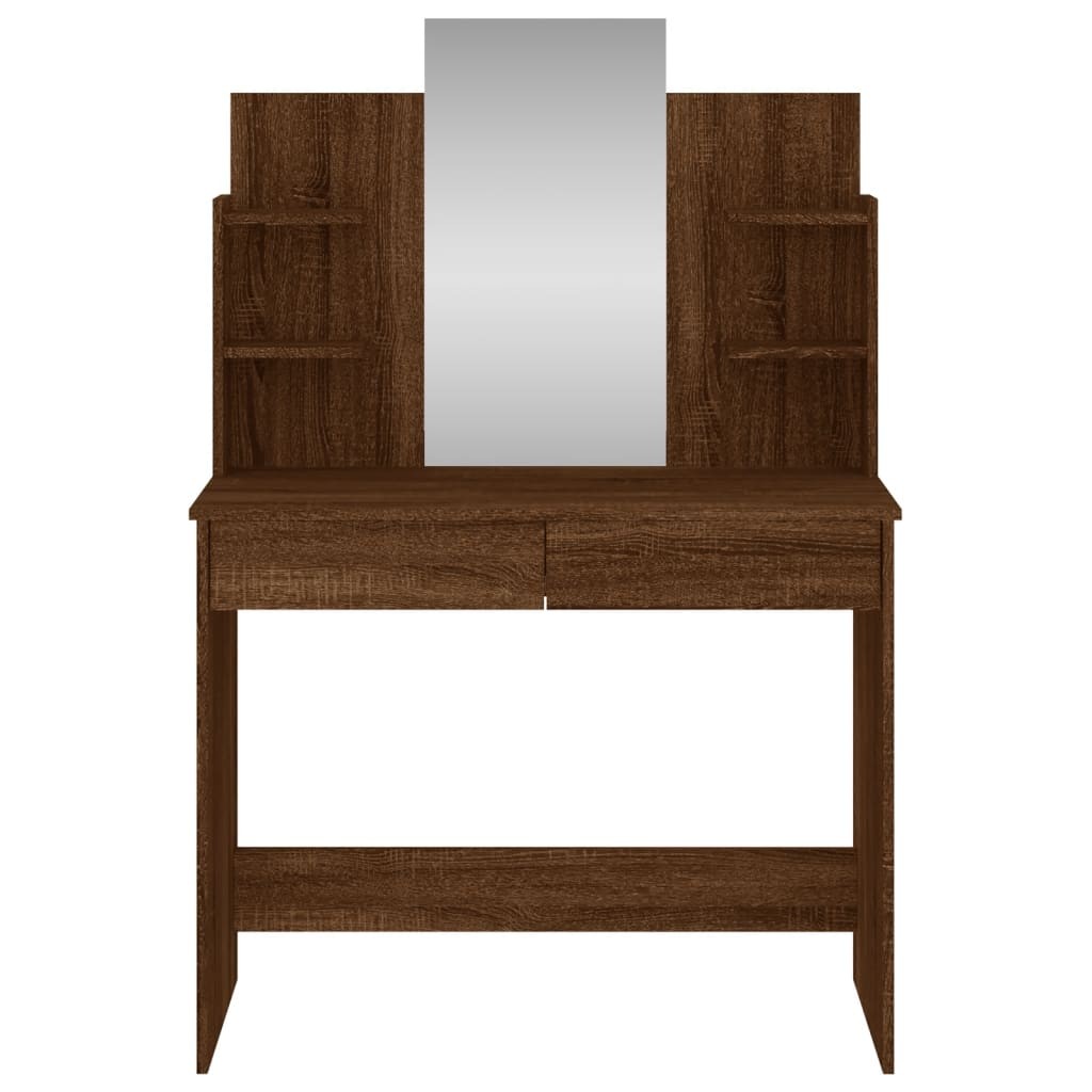 Dotée d'un aspect intemporel et raffiné, la coiffeuse avec miroir est un excellent supplément à la décoration de votre chambre à coucher tout en gardant vos cosmétiques à portée de main ! Matériau durable : le bois d'ingénierie est d'une qualité exceptionnelle avec une surface lisse et présente également résistance, stabilité et résistance à l'humidité. Fabriquée en bois d'ingénierie, cette table de maquillage est facile à nettoyer.Grand espace de rangement : cette coiffeuse comprend 2 tiroirs et 4 petites étagères, qui offrent suffisamment d'espace pour ranger vos essentiels cosmétiques bien organisés.Miroir utilitaire : le magnifique miroir inclus offre une vue dégagée pour l'application du maquillage et ajoute une touche élégante à la coiffeuse. Attention :Afin d'éviter qu'il ne bascule, ce produit doit être utilisé avec le dispositif de fixation murale fourni.